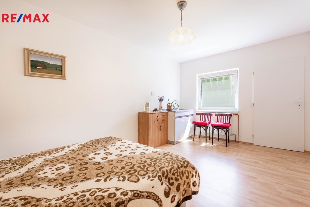 Ve dvorním traktu se nachází samostatný apartmán o dispozici 1+kk s kuchyňskou linkou a koupelnou se sprchovým koutem, umyvadlo, WC, vytápění samostatným plynovým kotlem. Vjezd do dvora je vraty z hlavní ulice, kde můžou parkovat až 2 auta a garáž o výměře 16m2. Vedle garáže se nachází místnost 10m2 a dílna o výměře 17m2 pro kutily. Dům je částečně podsklepený, kde se nachází technické zázemí domu pro vytápění (ohřev vody, zajišťuje plynový kotel a kotel pro tuhá paliva ( pelety) - náklady na rok 20000 Kč, velmi nízké provozní náklady. V druhé části se nachází klenbový sklep o výměře 7,2m2. RD byl zcela zrekonstruován, z ulice je RD zateplený izolační deskovou vatou, nová fasáda, podlahy, rozvody, technické zázemí, sociální zázemí, střecha původní v dobrém technickém stavu. Vchod do RD je z ulice i ze dvora. Dům má krásnou okrasnou zahradu s posezením ve vnitrobloku (oáza klidu). Zdi jsou obloženy SDK. Ze zadní části je vstup do sadu, který má 2106m2 . V sadu se nachází ovocné stromy, keře i zde možnost záhonů pro pěstování. Na pozemku se nachází zahradní domek na ukládání nářadí a potřeb pro údržbu sadu. Dle územního plánu je tento pozemek v navrhované ploše Br. - bydlení v rodinných domech. Současné náklady na bydlení RD je 1400 Kč elektřina, 400 Kč plyn měsíčně, voda 200 Kč ročně, RD má vlastní studnu, ale je i napojený na řád. V obci Podomí se nachází mateřská školka, základní devítiletá škola, obchod s potravinami, restaurace.