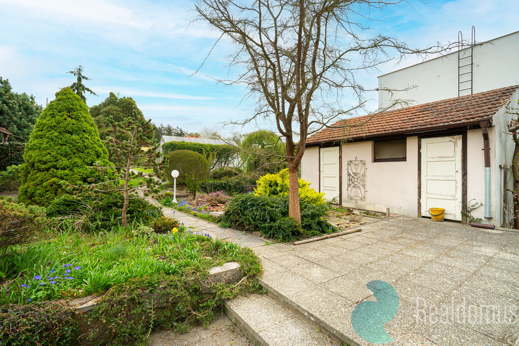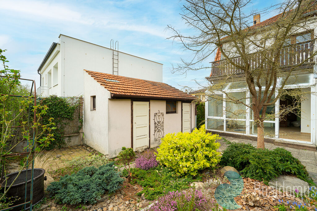 K domu náleží nádherná udržovaná zahrada s praktickým skleníkem, romantickým zákoutím pro opékání buřtů, dílnou pro kutily a garáží pro pohodlné parkování.