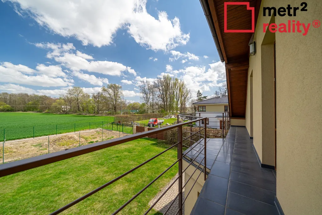 hledáte pohodlný život v hotovém velmi dobře udržovaném cihlovém rodinném domě v klidné lokalitě v Bystrovanech na ul. Polní? Ve výhradním zastoupení klienta Vám nabízíme ke koupi dvoupodlažní rodinný dům postavený v roce 2009 s dispozicí 4+1 a užitnou plochou 152 m². Dům nabízí vše, co rodina potřebuje, v přízemí je obývací pokoj (26,7 m²) s krbem s tepelnými průduchy v obývacím a jednom pokoji v patře, kuchyně s jídelnou (21,7 m²) s vestavnými spotřebiči zařízenou linkou. Dále vstupní prostor, zádveří, hala. Nechybí koupelna se sprchovým koutem a WC. Výhodou je zastřešená terasa (26,4 m²) přístupná francouzským oknem z jídelny. V podlaží jsou 3 pokoje (18,4 m², 14 m² a 12,7 m²) z toho dva se společným balkonem (10,7 m²) a třetí se šatnou (3,6 m²). A samozřejmě koupelna s vanou i sprchovým koutem. Příjemným komfortem je samostatné WC. V obou obytných podlažích je podlahové topení. Dům je celopodsklepený (77 m²) a v pozemních prostorech se nachází posilovna, prádelna a kotelna s plynovým kotlem se zásobníkem na 60 l. vody a výkonem 3,5-20 kW, sklad a garáž pro motorky, čtyřkolky či jiná terénní vozítka (s automatickými garážovými vraty a prudším sklonem vjezdu). K dispozici jsou parkovací místa v ulici. Rozlehlá zahrada 620 m² je opatřena automatickým závlahovým systémem. Dům je zařízený, připravený k nastěhování.