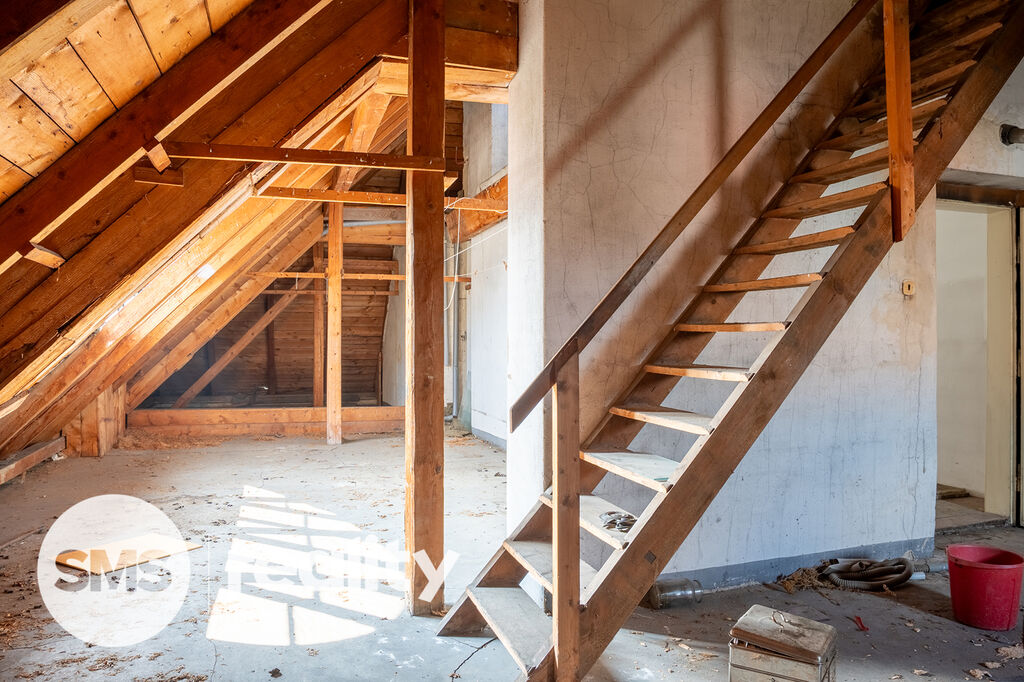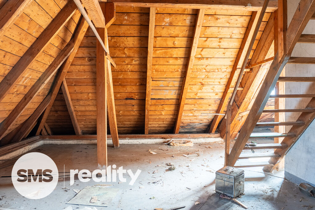 Půda: Prostorná, ideální k vestavbě dalších obytných jednotek