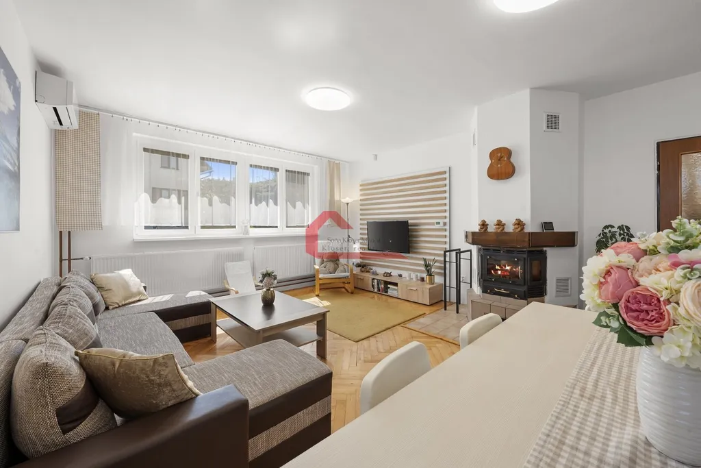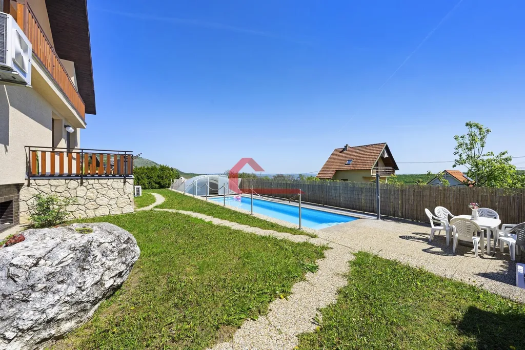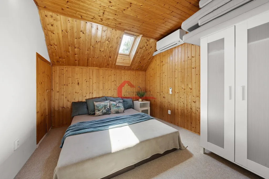 Tento plně klimatizovaný dům má celkovou plochu 485 m2 a nabízí prostorné obytné prostory s užitnou plochou 201 m2. V domě se nachází 2 nadzemní podlaží a 1 podzemní podlaží. Je zde 6 ložnic, obývací pokoj se zděným krbem, jídelna a kuchyně se vstupem na prostornou terasu s posezením a úchvatným výhledem do okolí. Jsou zde 2 koupelny s vanou a WC a dále místnost s infrasaunou značky Marimex s WC a umyvadlem .