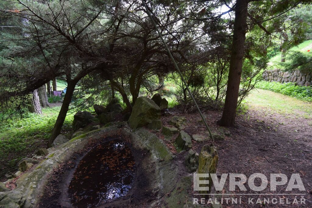 Chata stojí na terasovitém pozemku o výměře 678 m2. Na pozemku s travním porostem je mimo jehličnanů také 8 jabloní, z toho 5 starších a 3 nově vysázené. Na pozemku nalezneme i místo, kde rostou lesní jahody. Tento útulný a romantický pozemek nabízí dostatek úžasných zákoutí pro zasloužené chvíle odpočinku a relaxace, které ještě umocňuje zurčící potok tekoucí pár metrů od pozemku.