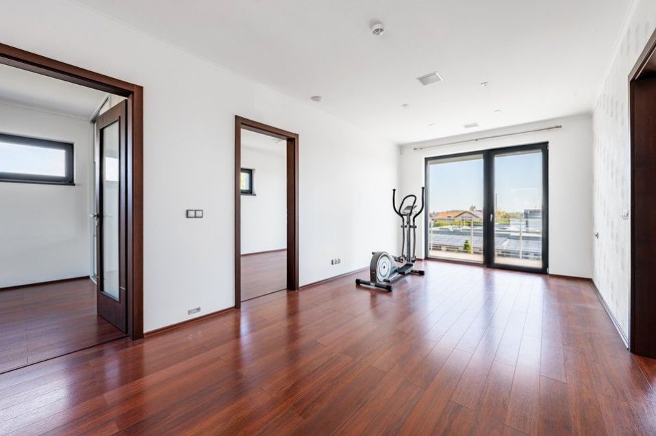 V domě je k dispozici množství vestavěných skříní. Kuchyňská linka je vybavena kvalitními vestavěnými spotřebiči Bosch. Společné části domu jsou ozvučené centrálním audio systémem. Ve všech pokojích jsou datové rozvody. Dům je vybaven kamerovým bezpečnostním systémem a alarmem. V garáži je přípojka na elektronabíjení. Vjezdová vrata mají dálkové ovládání.