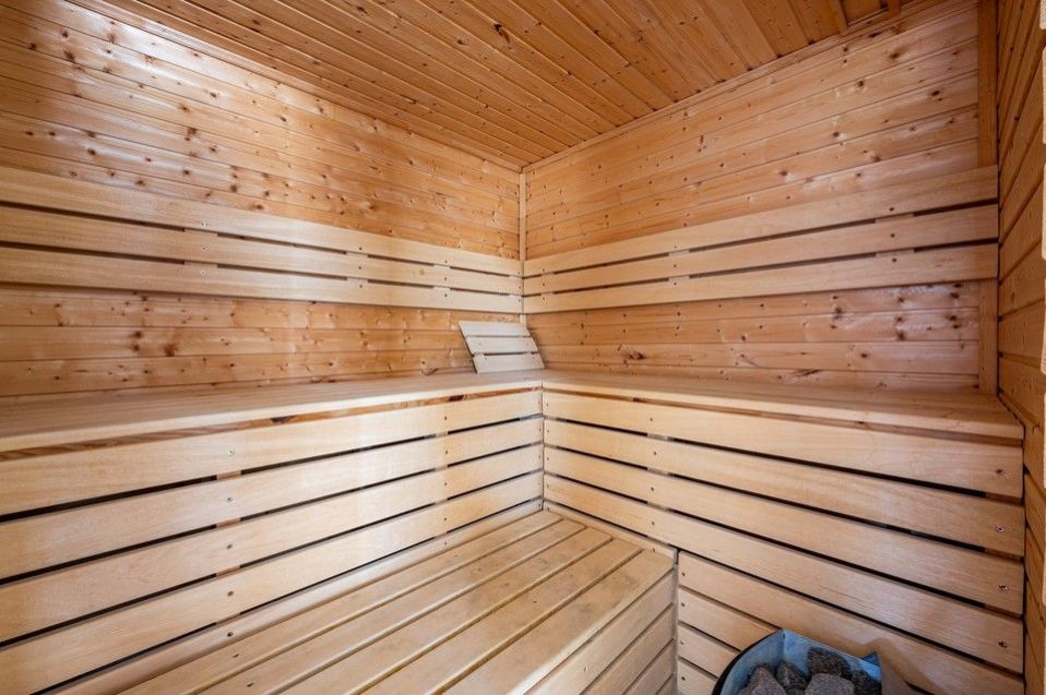 Dům má dispozici 5+kk. V přízemí je vstupní chodba, prostorný obývací pokoj s krbem, kuchyňským koutem a vstupem do zahrady, ložnice s en-suite koupelnou s toaletou a sprchou, další samostatná toaleta a technická místnost. V patře jsou 3 ložnice, koupelna s vanou, sprchou, toaletou a saunou. Z každého pokoje je vstup na jednu z teras. Z jižní strany přiléhá k domu garáž pro 2 automobily, nad ní je půda sloužící jako další úložný prostor.