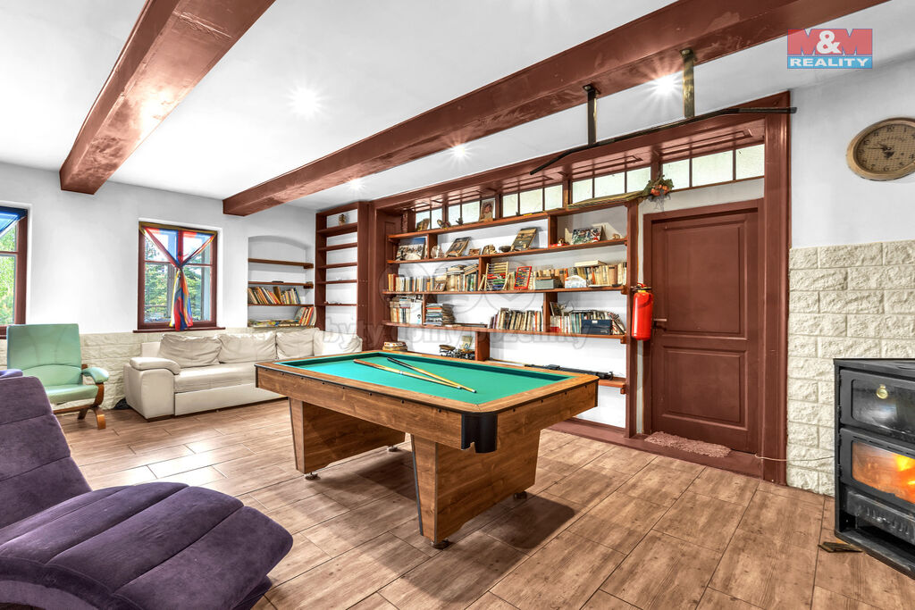 Nabízíme k prodeji soubor rodinných domů v obci Mostek, část obce Souvrať. Tato unikátní nemovitost se nachází na okraji obce a pyšní se nádherným prostranstvím, které zajišťuje dostatek soukromí i prostoru pro relaxaci. Nemovitost má celkem 9 prostorných místností s užitnou plochou 344 m². Dominantou domu je obývací pokoj s velkorysými rozměry s krbem a podlahovým vytápěním. Vytápění je dále zajištěno zplynovacím kotlem na dřevo. Sousední bývalý taneční sál nabízí nekonečné možnosti přizpůsobení ať už k dalšímu bydlení, nebo ke komerčnímu využití. V domě se nachází hezký pískovcový sklep. Celková plocha pozemku činí 4173 m², což zaručuje dostatek prostoru pro odpočinek, nebo kreativní využití podle vašich představ. Nemovitost je ihned k nastěhování. Obec Mostek se nachází v okrese Trutnov, v Královéhradeckém kraji, a nabízí příjemnou atmosféru díky okolní přírodě a blízkosti Boreckého potoka. Okolí nabízí turistické a cyklistické trasy, v zimě je možné využít nedaleké lyžařské areály.