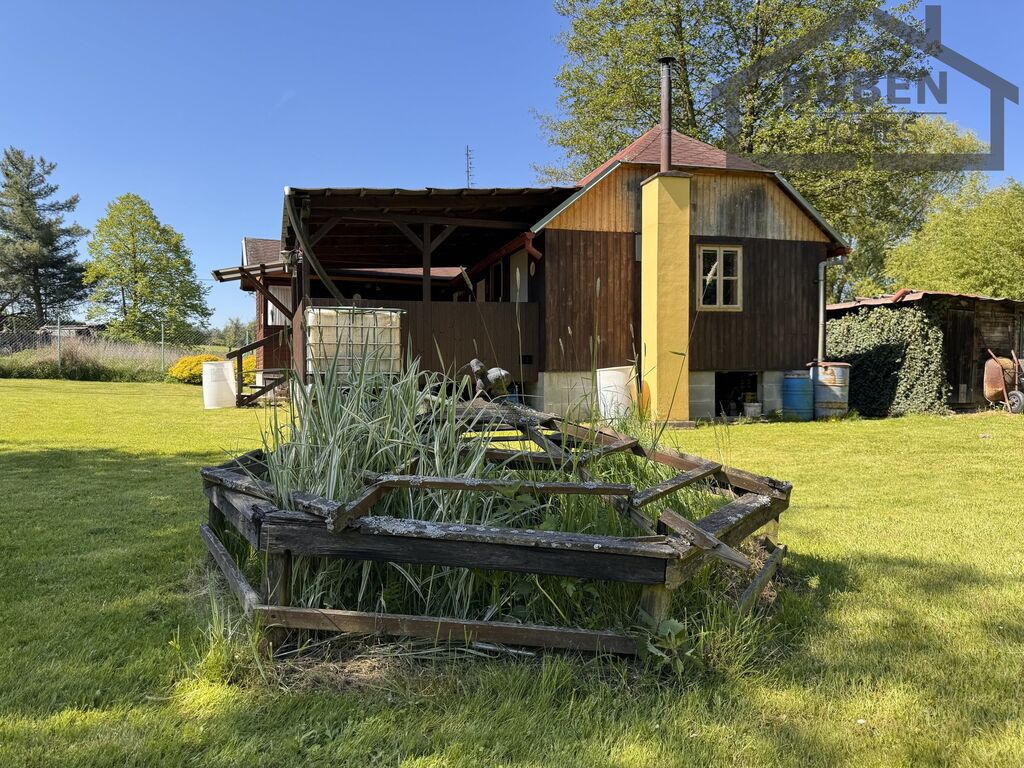 Zahrada je prostorná a udržovaná, osázena několika vzrostlými stromy a okrasnými keři, ostatní plocha zahrady je zatravněna. Zahrada je kompletně oplocena plotem z pletiva. Na zahradě se nachází kolna a suché WC. Přístup je zajištěn po zpevněné komunikaci. Vodu lze čerpat z obecní studny, která se nachází nedaleko hranice pozemku. Voda není přivedena do zahradní chaty, ale jen k nádrži před chatou.