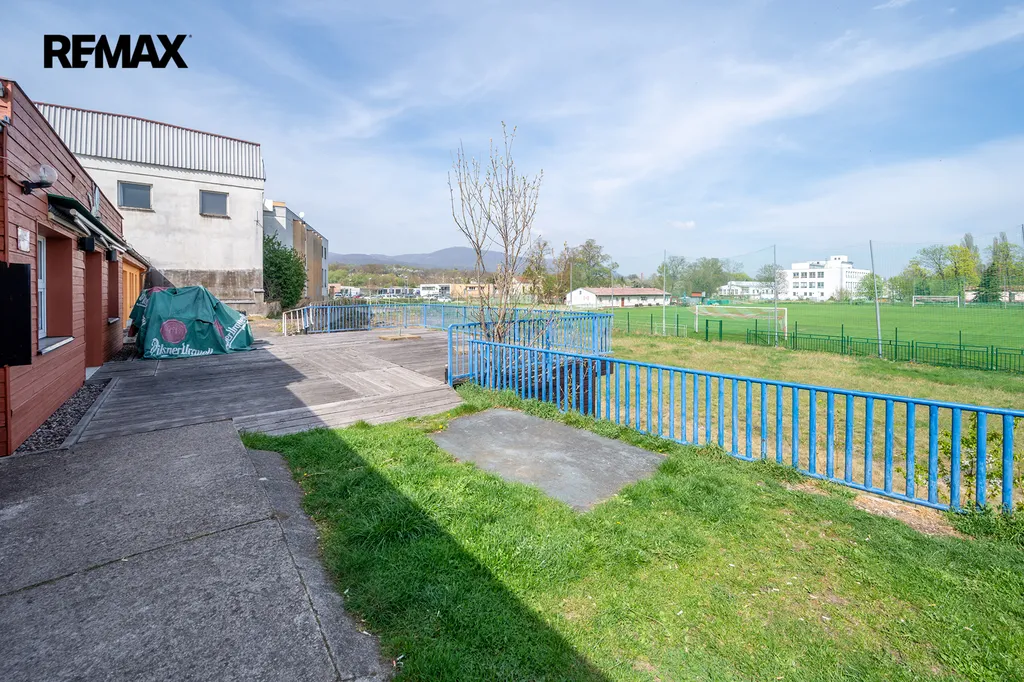 Z druhé strany jsou dvě samostatné bytové jednotky o dispozici 2+1 88 m2 a 1+1 40 m2 se soukromím přístupem a větší z bytů má vstup na menší terasu s výhledem na sousední stadión.