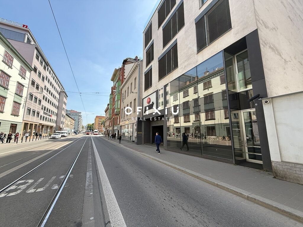 Prostor je přístupný samostatným vstupem z ulice a zároveň pohodlně dostupný výtahem, což zajišťuje bezbariérový přístup pro klienty i zaměstnance. Díky velkým proskleným výlohám směrem do rušné ulice získává prostor nejen dostatek denního světla, ale také výbornou viditelnost.