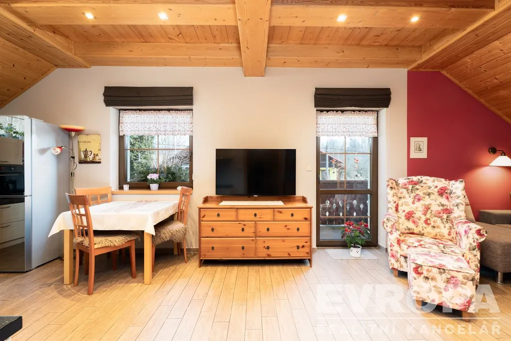 Světlý a vzdušný obytný prostor s kuchyňským koutem, ložnice a dvě koupelny s WC ve 2.NP