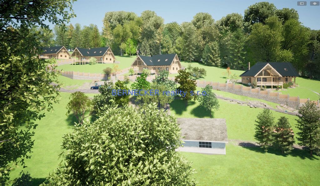 Nabízíme projekt 4 moderních luxusních roubenek na hranici CHKO Hrádeček, k. ú. Vlčice u Trutnova. Pozemkové parcely jsou o výměrách 2114 až 3260 m2 v mírném jihozápadním svahu. Dispozice stavby v přízemí venkovní terasa 35 m2, velký obývací pokoj s kuchyní a jídelnou, spíž, 2 pokoje, technická místnost, koupelna a WC, v patře galerie, 3 pokoje, koupelna a WC. Stavbu lze doplnit o saunu, která bude přístupná z koupelny. Vytápění bude zajištěno tepleným čerpadlem a podlahovým vytápěním/ lze i kachlová kamna s krbem/, kanalizace ČOV. Stavba bude provedena z lepených sušených cedrových trámů 25x28cm.