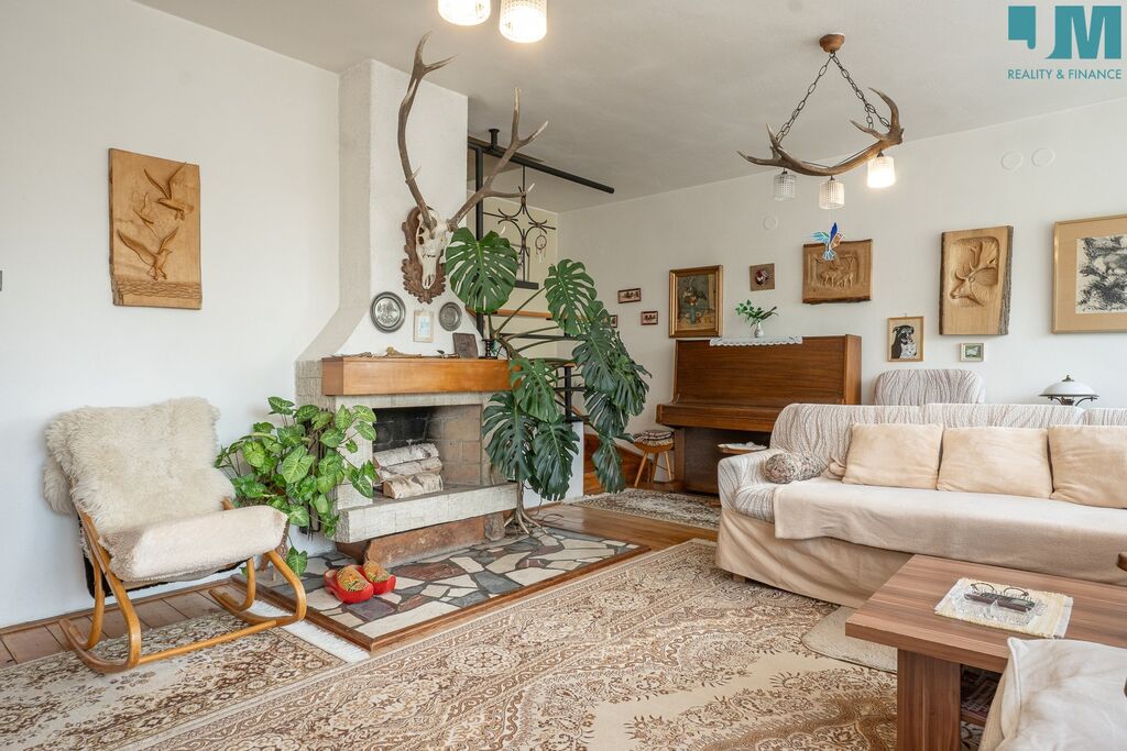 Kuchyně s možností jídelního koutu, praktický prostor pro pračku a umyvadlo – ideální řešení bez nutnosti chodit do koupelny, samostatné WC,  prostorný obývací pokoj s krbem, který navodí příjemnou atmosféru během chladných večerů.. z obýváku je také přístup na balkon s výhledem do okolí. Podlaha v okolí krbu je obložena elegantní benátskou dlažbou, která je nejen estetická, ale i praktická.