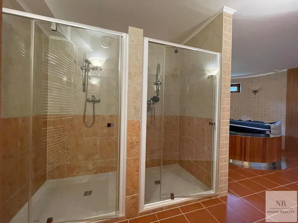 Nemovitost je ve velmi dobrém technickém stavu, což je výsledkem pečlivé údržby jejích majitelů. Moderní vybavení zahrnuje saunu, vířivku a vlastní bar, které vytvářejí příjemný prostor pro relaxaci a odpočinek. Zahrada, pečlivě udržována, je osázena okrasnými keři a vzrostlými tújemi, které zajišťují dostatek soukromí.