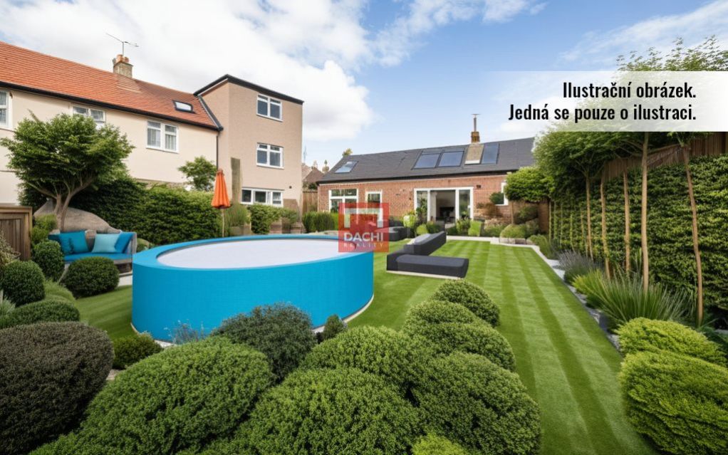 Na uzavřeném dvoře se nacházejí tři hospodářské budovy včetně prostorné garáže, sklepa, skleníku a bazénu. Na zahradě možnost příjemného posezení a relaxace.