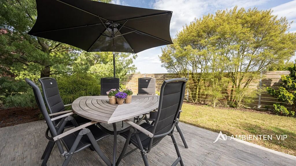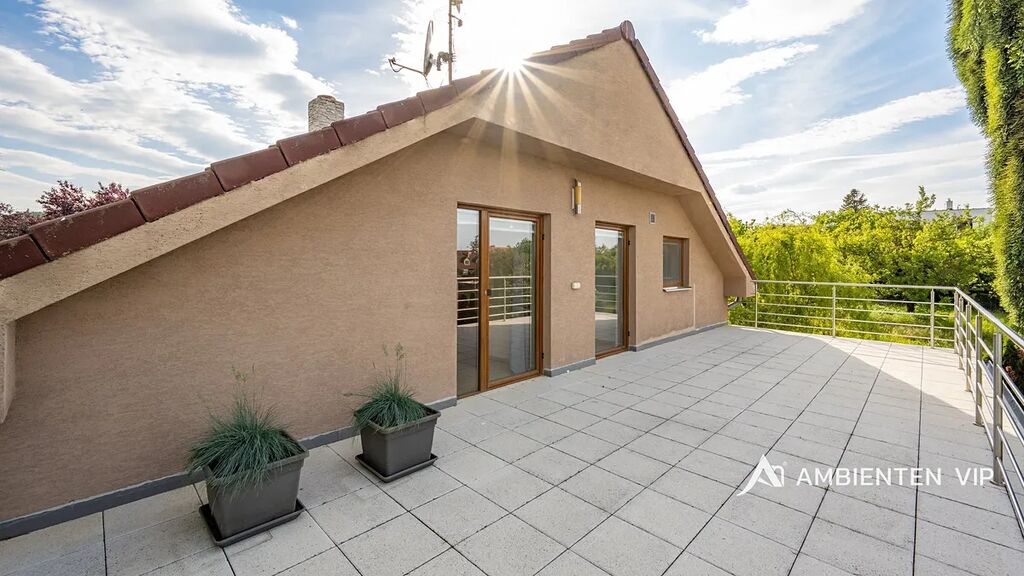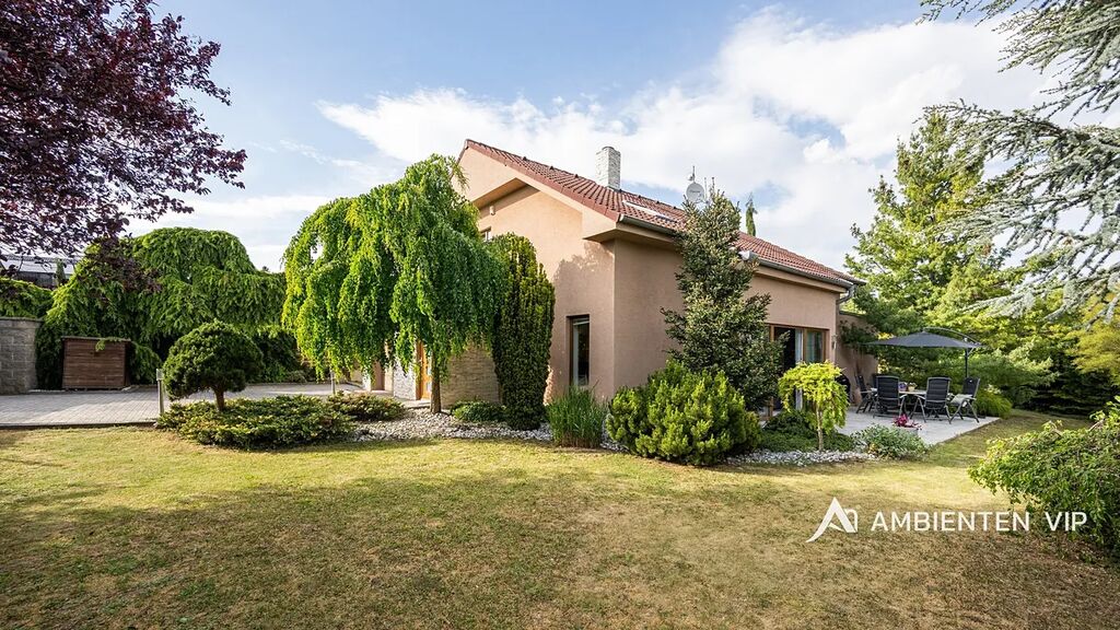 AMBIENTEN VIP exkluzivně nabízí prodej samostatně stojícího domu 5+kk pro ty, kteří hledají klid uprostřed zeleně, a přitom v blízkosti obchodního centra Futurum s perfektním dojezdem do Brna a na D1. Celková plocha pozemku činí 975 m2, ZP a nádvoří činí 176 m2, UP přízemí domu vč. garáže činí 133,4 m2, z toho má garáž 18,5 m2, UP prvního patra činí 138 m2, z toho terasy 11,5 m2 a 34,3 m2, UP prvního patra činí bez teras 92 m2. Čistá obytná plocha domu bez garáže a teras činí 207 m2. Nemovitost je posledním domem v boční klidné ulici ve velmi dobrém technickém stavu. Nabídne vám nezapomenutelné okamžiky v okrasné zahradě u bazénu. Zahrada je kompletně oplocená a vjezd na ni je přes bránu na dálkové ovládání. Nemovitost je z roku 2010 a autorem projektu domu byl Arch. Kotlán. Příjezd k vilce je po obecní asfaltové komunikaci. Nemovitost je postavena z Ytongu, zateplená a má plastová okna vč. vnitřních žaluzií. Nemovitost není podsklepená. Garáž je pro jeden vůz přímo průchozí do domu. V přízemí domu je podlahové topení, v prvním patře domu jsou radiátory. Vytápění domu je přes plynový kondenzační kotel Baxi, ohřev vody je také plynem do bojleru. Nemovitost má dva komíny jeden pro kotel druhý pro krb, který je umístěný v obývacím pokoji a je velice příjemnou dominantou spodního patra domu. Má průduchy i do prvního patra domu. Nemovitost je napojena na veřejný vodovod, kanalizaci, má vlastní plynovodní přípojku. Je vybavena alarmem s možností kódování garáže samostatně. V přízemí domu se nachází garáž pro jeden vůz průchozí do domu, dále prádelna, vstupní chodba, otevřená dispozice obývacího pokoje, jídelny a kuchyně, dále samostatná pracovna a koupelna. Z kuchyně a obývacího pokoje je přímý vstup do nádherné zahrady. Do horního patra, ve kterém jsou tři ložnice, jedna z nich s vlastní šatnou, koupelna, samostatná toaleta se vstupuje po moderním vzdušném schodišti. Ze všech pokojů v prvním patře je výstup na terasy. Na jednu z nich je výstup z chodby a ložnice směrem k bazénu, na druhou z nich vstupujete z obou pokojů. V rámci zahrady se nachází venkovní nezastřešený bazén o rozměru 7 x 3,5 m, který je vybavený osvětlením, protiproudem a má ohřev přes tepelné čerpadlo, které je umístěno na zahradě. Výše měsíčních záloh na energie činí za elektřinu 5.500,-- Kč, za plyn 3.770,-- Kč, za vodu 1.000,- Kč. Internet v domě je od firmy Datacom. Zahrada domu je kompletně zatravněná a má zahradní zavlažování. V rámci kupní cen zůstává kuchyňská linka na míru vč. spotřebičů, dále veškerý vestavný nábytek v domě. Nemovitost je volná po dohodě s majiteli velice rychle. Pokud hledáte nemovitost vhodnou pro rodinné bydlení na krásném klidném místě, a přitom chcete mít dojezd do centra Brna do deseti minut, tak si neváhejte sjednat prohlídku této nemovitosti. Projektová dokumentace domu je k dispozici.