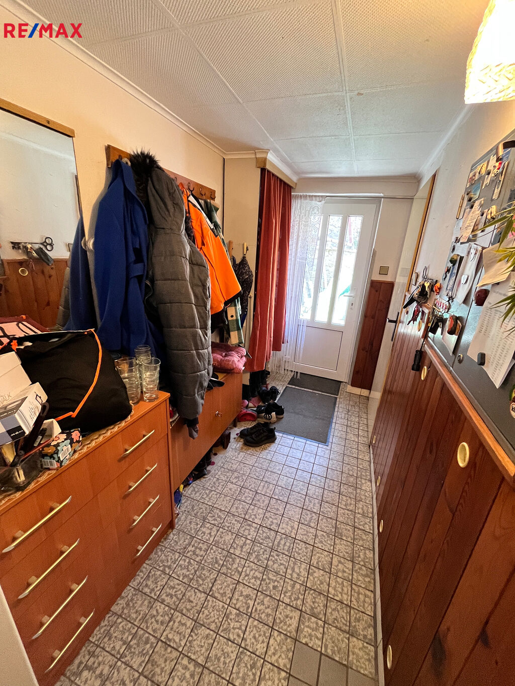 Jedná se o prodej samostatně stojícího rodinného domu 5+1 s garáží umístěného v okrajové části Nové Cerekve na pozemku o celkové výměře 527m2. Dům je dispozičně tvořen v přízemí předsíní 14,14m2, WC 1,21m2, kuchyní 9.74m2, ob. pokojem 27,55m2, ložnicí 14,80m2, a spíží 1,17m2, v podkrovní části se nachází 3 pokoje 20,97m2, 13m2, a 16,08m2, dále je v horní schodištové části umístěna kuchyň a v mezipatře spíž 2,26m2. Dům je napojen na obecní kanalizaci, zdroj vody je z vlastní studny, na hranici pozemku je obecní vodovod, vytápění ústřední dálkové z místní obecní štěpkovny, dále kotel na tuhá paliva. Okna domu jsou plastová, střešní krytinu tvoří taška pálená. U domu je garáž s el. vraty, dvůr je před položením dlažby a opravy venkovní pergoly. Podsklepení domu není. Městys Nová Cerekev disponuje veškerou vybaveností, od Pelhřimova vzdáleno 12km. Pro více informací volejte makléře nabídky.