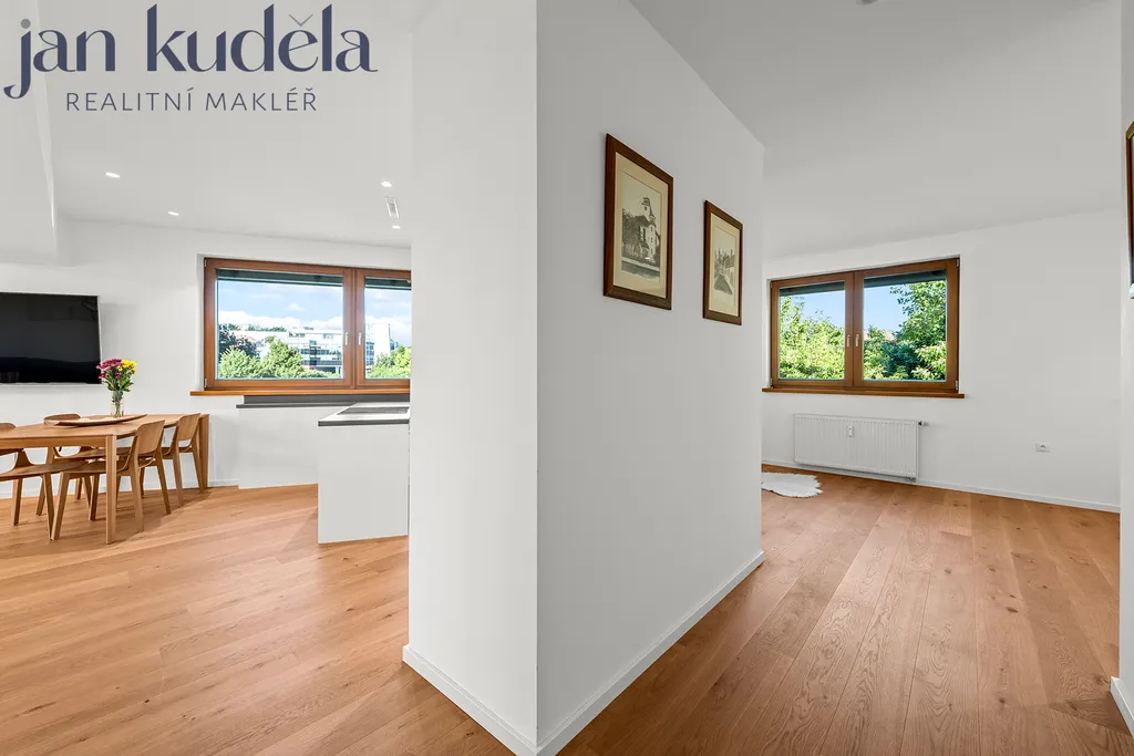 Díky novým dřevěným oknům s trojskly a předokenním žaluziím je byt nejen tichý, ale i velmi útulný. Dřevěná podlaha navozuje pocit tepla a domáckosti.