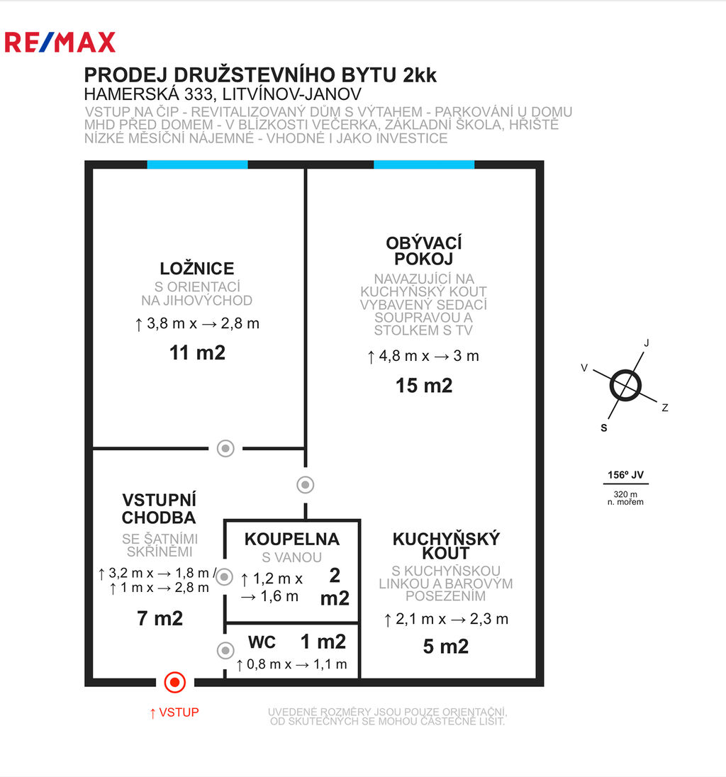 nabízíme Vám k prodeji zajímavou investiční příležitost v podobě družstevního bytu 2kk o velikosti 40,84 m2, který se nachází ve 4. patře revitalizovaného panelového domu s výtahem v ulici Hamerská 333 v Litvínově v městské části Janov. Správcem a zároveň vlastníkem domu je místní SBD Krušnohor, který se o nemovitost řádně stará: Nový výtah, výmalba, lino na chodbách atd. Vstup do domu je opatřen čipem, který eliminuje nežádoucí návštěvníky. O úklid se stará úklidová služba - v domě je proto pravidelně čisto a pořádek. Parkování je možné před domem i za ním. Přímo u domu je také zastávka MHD, nákupní středisko (večerka, potraviny), nedaleko domu je pak mateřská i základní škola nebo fotbalové hřiště. Pokud hledáte vhodný byt pro investici s nízkými měsíčními náklady, tato nabídka by Vás mohla zaujmout. Tento byt je vhodný nejvýše pro 2 dospělé osoby.