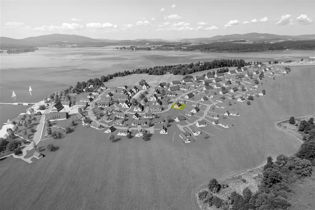 Tento exkluzivní pozemek pro rekreační dům Luxury chalet je součástí nového prémiového resortu VISION LIPNO přímo u břehu Lipna.