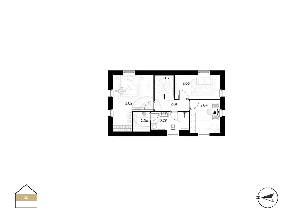 Návrh objektu dbá na nadstandartní vybavení, dřevěný obložený štít, krytý carport, prosklené portály, krbová kamna, příprava na saunu a solární elektrárnu. Dům je navržen včetně smarthome technologií s napojením na centrální systém, ze kterého lze dálkově kontrolovat přístup a zabezpečení objektu, včetně optimalizace elektrického vytápění a osvětlení.