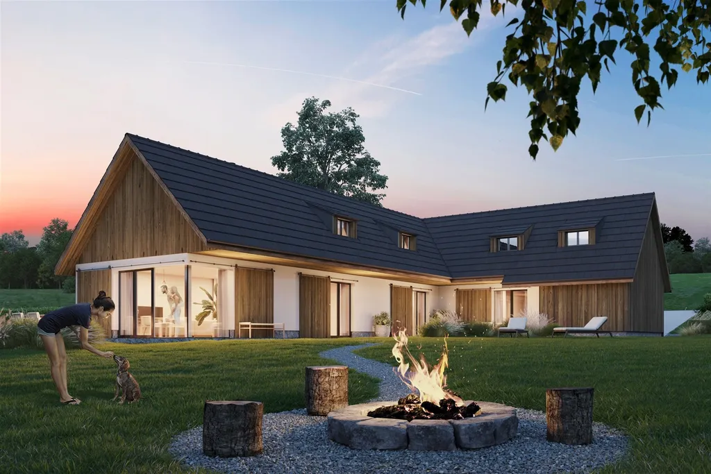 Návrh objektu dbá na příplatkové vybavení, dřevěný obložený štít, vlastní garáž, prosklené portály, krbová kamna, příprava na saunu a solární elektrárnu. Dům je navržen včetně smarthome technologií s napojením na centrální systém, ze kterého lze dálkově kontrolovat přístup a zabezpečení objektu, včetně optimalizace elektrického vytápění a osvětlení.