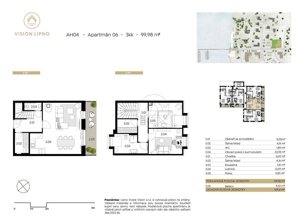 Apartmán o dispozici 3+kk s podlahovou plochou 100 m² nabízí unikátní zázemí k rekreaci pro Vaši rodinu i budoucí hosty. Nachází se v prvním patře apartmánového domu, který je navržen renomovaným ateliérem v souladu se šumavskou architekturou a důrazem na kvalitu stavebních materiálů. Jednotka disponuje prostorným zádveřím se vchodem do velkého obývacího pokoje s kuchyní a vstupem na krásný balkon s unikátním výhledem na vodní hladinu Lipna. K využití je také sklad a samostatné WC. V podkroví se nachází ložnice, pokoj, šatna a koupelna. Cena apartmánu je včetně 21%DPH a zahrnuje také parkovací stání. Za příplatek je možné dokoupit sklepní jednotku a kotviště.