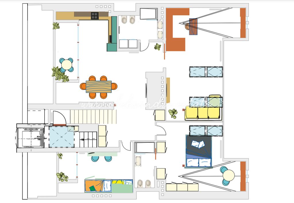 Byt právě prošel precizní a do detailu promyšlenou rekonstrukcí (2024) s důrazem na kvalitu, styl a funkčnost. Výsledkem je moderní, světlý interiér s italským šarmem na míru vyrobená kuchyně z Itálie, obklady a dlažby Fondo Valle (120x120 cm), dubová podlaha I. třídy od Labor Legno. Každý pokoj je vybaven klimatizací, bezpečnostním alarmem, novými okny a rozvody. K dispozici je nový kondenzační plynový kotel Bosch. Samozřejmostí jsou dvě elegantní koupelny se sprchovým koutem, WC a bidetem.