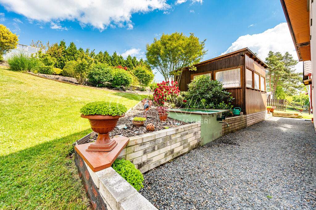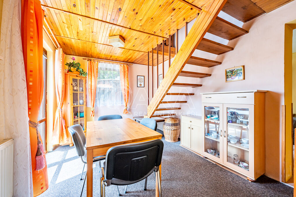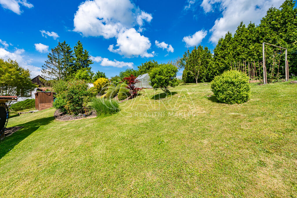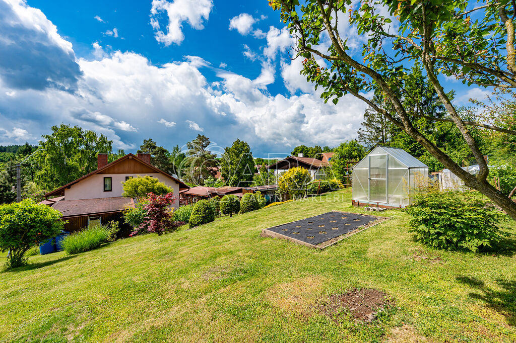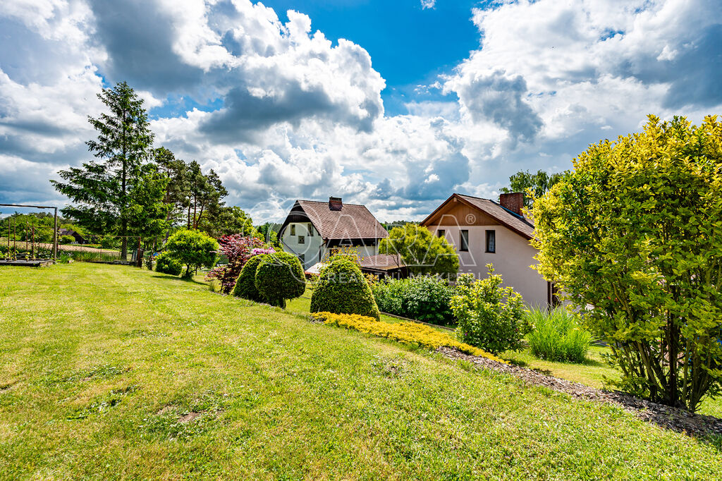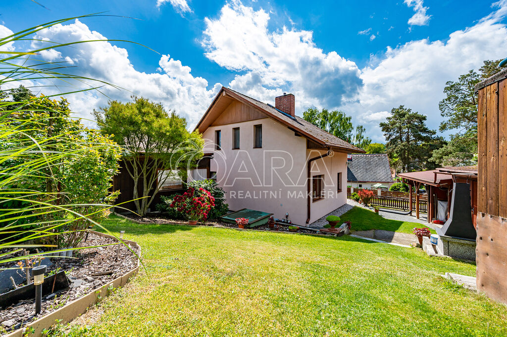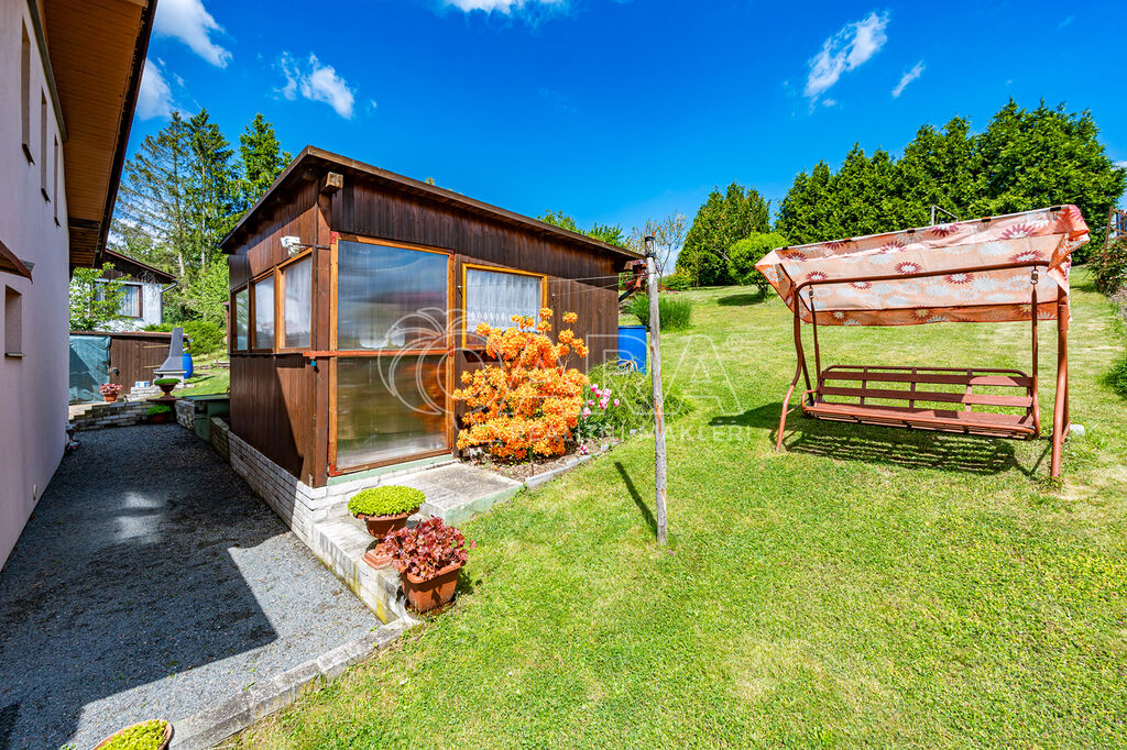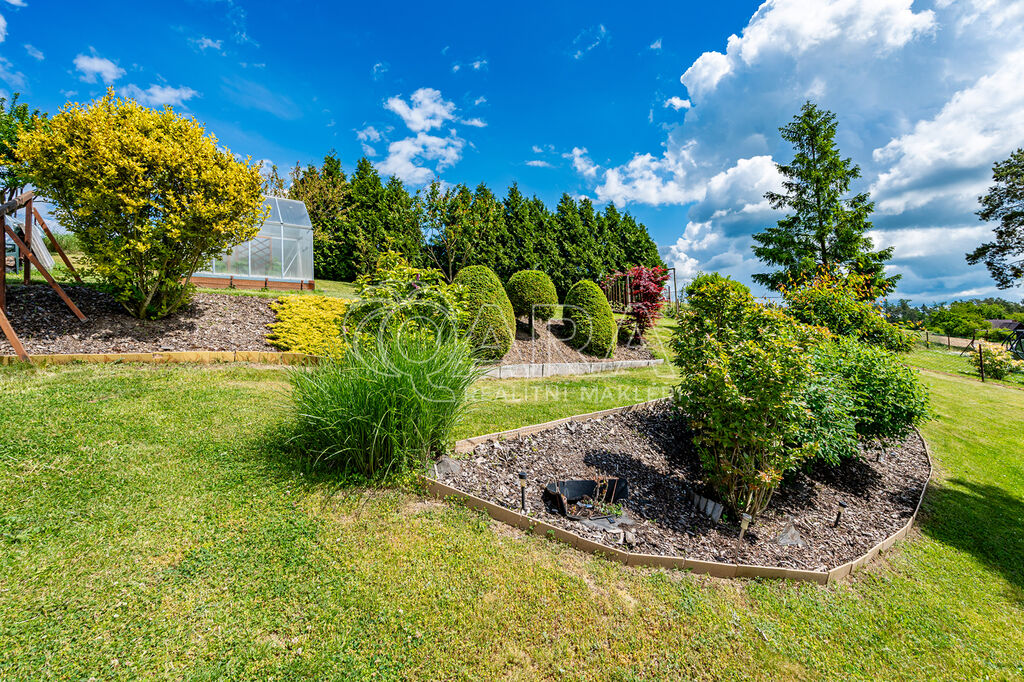 Pozemek je osázen vzrostlými keři, stromy, trvalkami a nabízí i plochu pro pěstování zeleniny. Kromě toho zde najdete krytou pergolu vhodnou pro posezení s přáteli, přístřešek pro auto, dílnu, dřevník a kůlnu. Voda je čerpána z vrtané studny hluboké 27 metrů a je pitná. Vytápění zajišťují krbová kamna s výměníkem, ohřev vody pak bojler. Dům je ve velmi dobrém technickém stavu a připraven k okamžitému užívání.