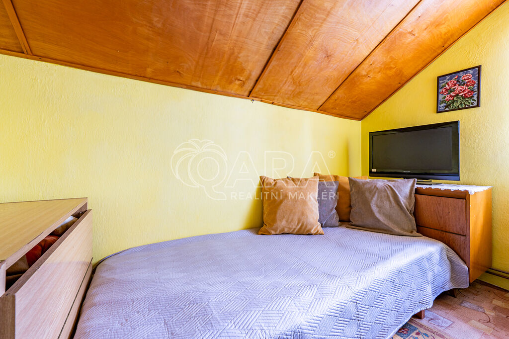 V prvním patře naleznete hlavní ložnici s manželskou postelí, pokoj s rozkládacím gaučem, další pokoj s jednolůžkem a otevřený prostor vhodný jako pracovna nebo relaxační kout. Z patra je přístupný balkón s krásným výhledem do okolní krajiny.