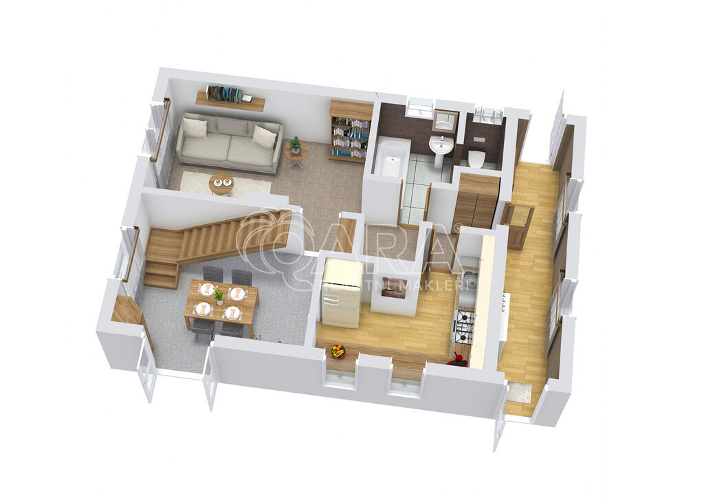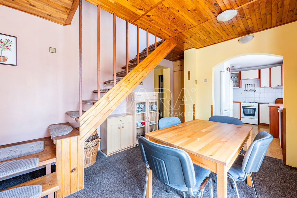 Dům je vhodný k celoročnímu užívání. V přízemí se nachází obývací pokoj s krbovými kamny, prostorná kuchyně, jídelna se vstupem do zahrady, koupelna s vanou, samostatná toaleta a veranda. V suterénu pod obývacím pokojem je umístěn menší sklep, ve kterém je instalován bojler pro ohřev teplé vody.