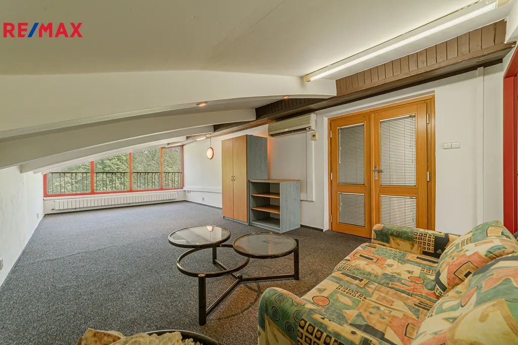 Zde se nachází prostorná společenská místnost 67 m2, ideální pro školení, semináře nebo další akce, a 5 dalších místností, které opět mohou sloužit jako kanceláře či ubytování. Opět tu najdete kuchyňku a sociální zařízení.