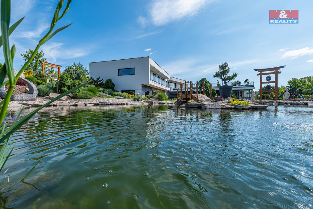 Prodej exkluzivní rodinné vily jen pár minut od Říčan a kousek od Prahy. Tato novostavba vás okouzlí nejen svou rozlehlostí a promyšleným designem, ale také technologickou vyspělostí a energetickou úsporností. Na pozemku o rozloze 6387 m² se nachází hlavní budova s užitnou plochou 895 m² a samostatný dům pro hosty o 160 m². Vila je koncipována jak pro velké setkávání s přáteli, tak pro klid v rodinném kruhu. Každý den si budete užívat velkolepou terasu navazující na hlavní ložnici, plynulé propojení interiéru s exteriérem, fantastické noční scenérie vaší zahrady a vždy se budete těšit domu, abyste mohli objevovat další detaily a zákoutí vašeho ráje. K vybavení patří fotovoltaická elektrárna s výkonem 56 kWp, tepelná čerpadla, podlahové vytápění, dobíjecí stanice pro elektromobily, desetimetrový přelivový bazén s wellness. Nechybí ani venkovní kuchyně s pecí na pizzu a domácí kino s klubem. Tento dům je ideálním místem pro ty, kteří hledají luxus, soukromí a klid.