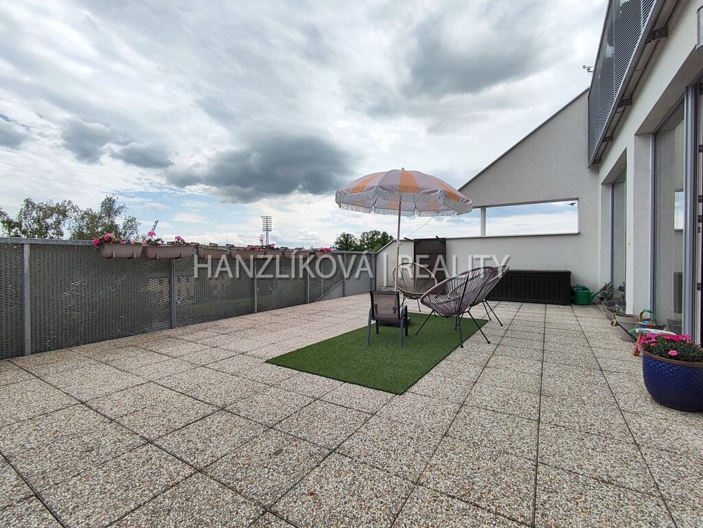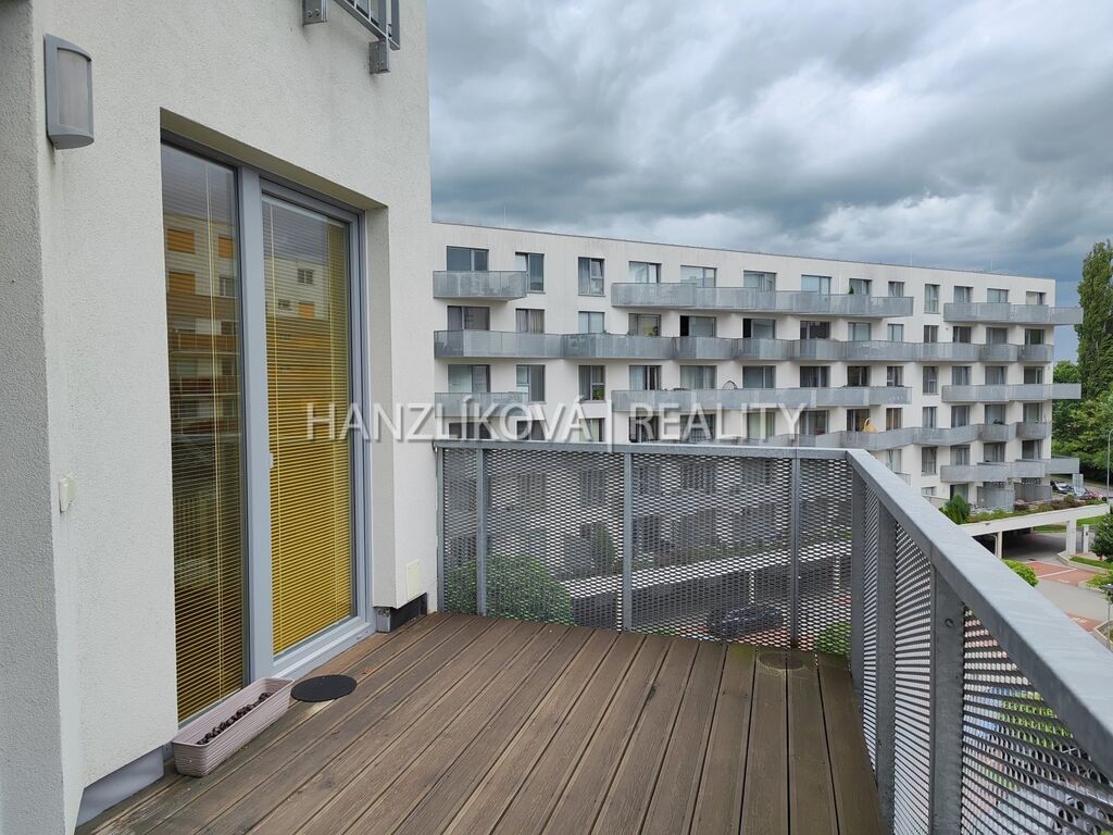 Nabízíme k pronájmu luxusní bytovou jednotku číslo A.5.5. Jedná se o byt 3+kk o výměře 99,25 m2 se dvěma terasami (8,40 a 42,95 m2), který se nachází v 5.NP rezidenčního komplexu DLOUHÁ LOUKA 2.etapa. Byt se skládá z: prostorné předsíně s vestavěnými skříněmi, koupelny s toaletou, dvou samostatných pokojů a obývacího pokoje s kuchyní. Přístup na terasy je ze všech pokojů. Byt je orientovaný na jiho-východ. Byt je pronajímán včetně kompletního vybavení - postele, vestavěné skříně, pohovka, jídelní stůl s židlemi, kuchyňská linka vč. spotřebičů (lednice s mrazákem, trouba, varná deska, digestoř, myčka), v koupelně pračka se sušičkou.