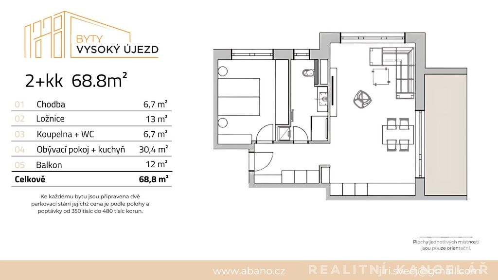 K bytu jsou připravena parkovací stání 1 rok nájem zdarma a poté za tržní cenu.