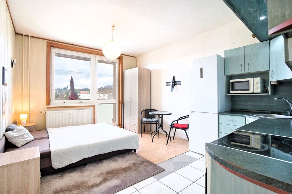 Světlý a útulný byt s dispozicí 1+kk a výměrou 22 m2 je situovaný ve 3.NP panelového domu, stojícího na travnatém kopci na úplném okraji města a obklopeného vzrostlými stromy. Byt před několika lety prošel kompletní rekonstrukci a je kompletně zařízený včetně kuchyňské linky, sklokeramické varné desky, ledničky s mrazničkou, pračky a nábytku. Je připravený k okamžité nastěhování bez dalších investic. Výhodou je lodžie s panoramatickým výhledem na celé město, prostorný sklep pro úschovu věcí a parkování přímo před domem. Celý dům má nová plastová okna a zábradlí lodžií a nově je kompletně zateplen.