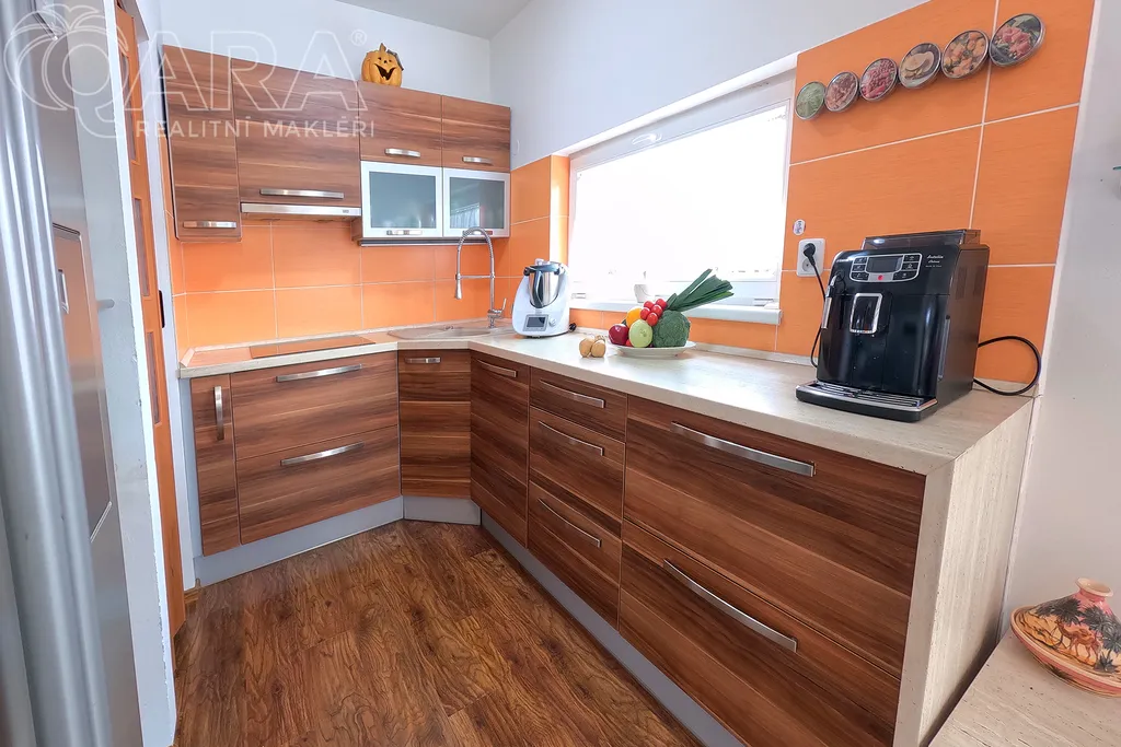 Patrový dům s dispozicí 5+kk, garáží, dvěma koupelnami, šatnou, a především s krytým bazénem, leží na pozemku o velikosti 1060 m2 a nabízí komfort 234 m2 celkové užitné plochy - 215 m2 užitné plochy + 19 m2 garáž.