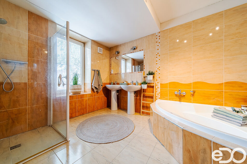 Dominantou tohoto domu je právě výtah, který zaručuje maximální pohodlí a bezbariérový přístup do obou pater. V přízemí vás přivítá prostorná kuchyně s jídelním koutem, komfortní obývací pokoj s přímým vstupem na slunnou terasu, velká koupelna s rohovou vanou i sprchovým koutem, samostatné WC a praktická technická místnost s přímým vstupem do zahrady. V podkroví se pak nachází útulná ložnice s lodžií, dva samostatné pokoje, šatna a další samostatné WC.
