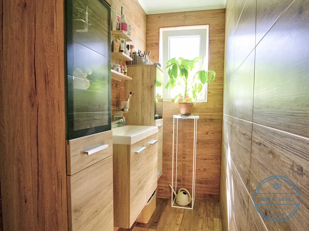 K tomuto domu se přichází tiše – zezadu, přes zahradu. Už samotný přístup napovídá, že vás čeká soukromí a klid. Dvoupodlažní dům s dispozicí 3+1 překvapí útulností a otevřeností. V přízemí vás přivítá kuchyně propojená s jídelnou a obývacím prostorem, zatímco v patře se nachází ložnice a dětský pokoj.