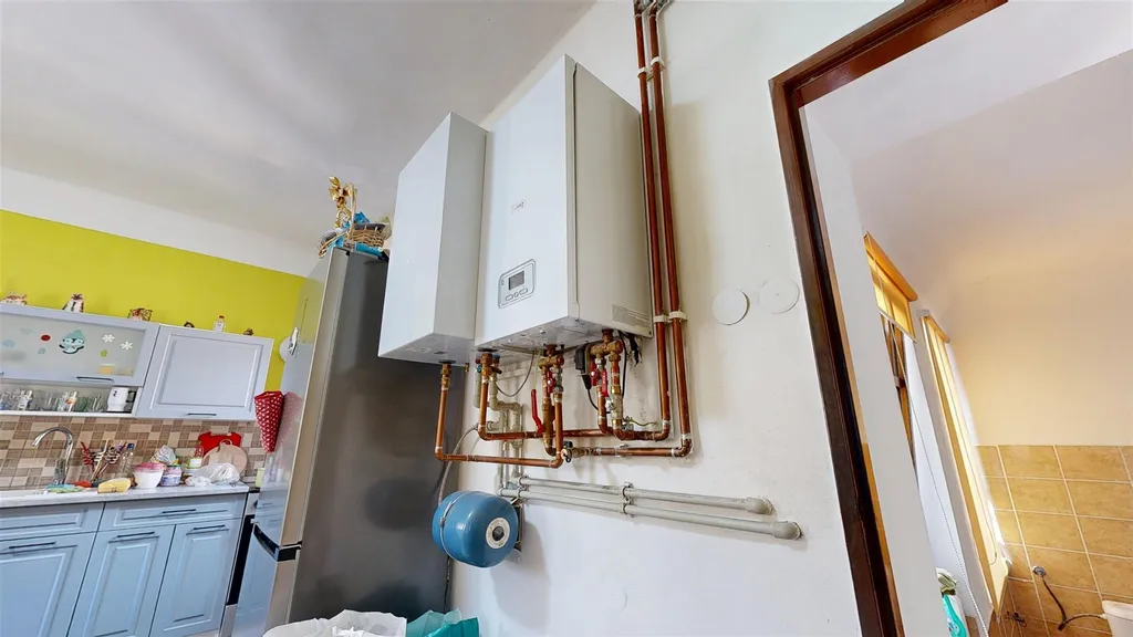 * byt 1 podlahová plocha 137 m2, 4 + 1, elektrokotel a zároveň ohřev vody, možnost přepnout na kamna s výměníkem