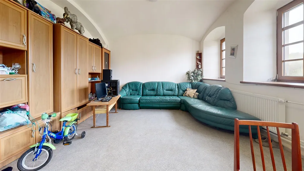 Vedlejší navazující budova má patro připravené na přestavbu: jsou osazena plastová okna a připravené odpady, rozvody vody a dole nová elektrická skříň, v současné době je využívána jen občasně. Pozemky jsou průběžně udržovány, ale nevyužívány.