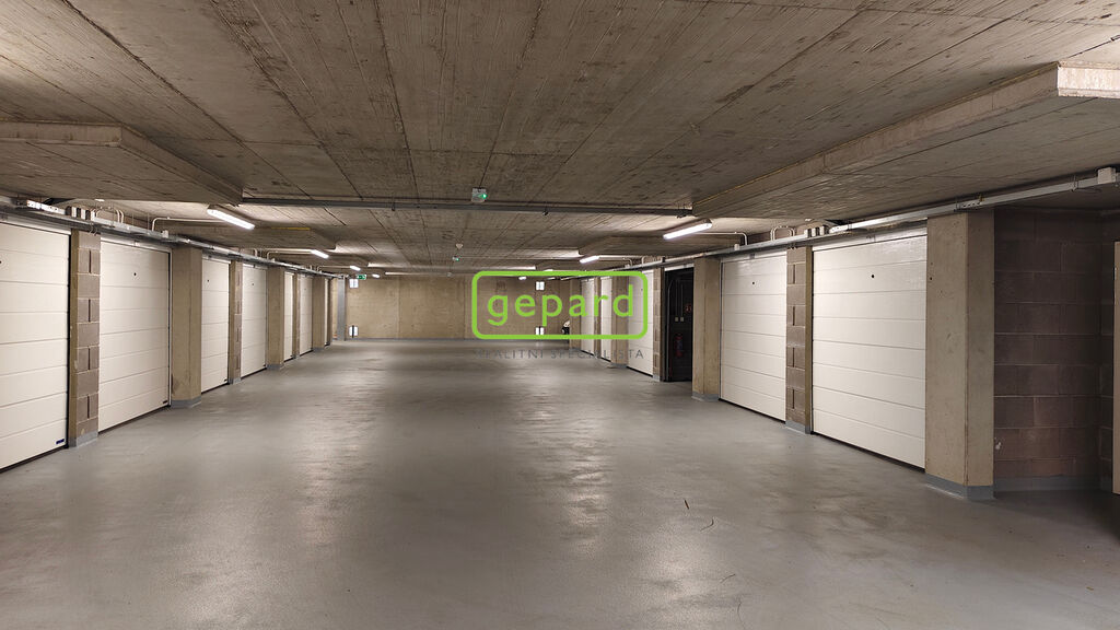 Garáž se nachází ve 2. nadzemním podlaží, kam pohodlně vyvezete auto výtahem. Vjezd do domu i vjezd do garáže je vraty na dálkové ovládání. Rozměry garáže jsou cca 290 cm na šířku, 520 cm na délku a 210 cm na výšku – ideální pro běžné osobní auto, ale vejde se i něco navíc ( střešní box, zimní pneumatiky apod.). V garáži je osvětlení a elektrická zásuvka, což oceníte při nabíjení autobaterie nebo vysávání auta.