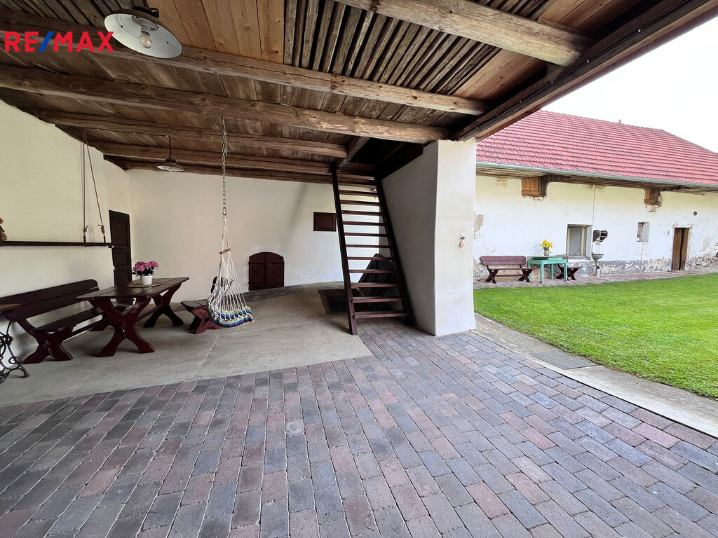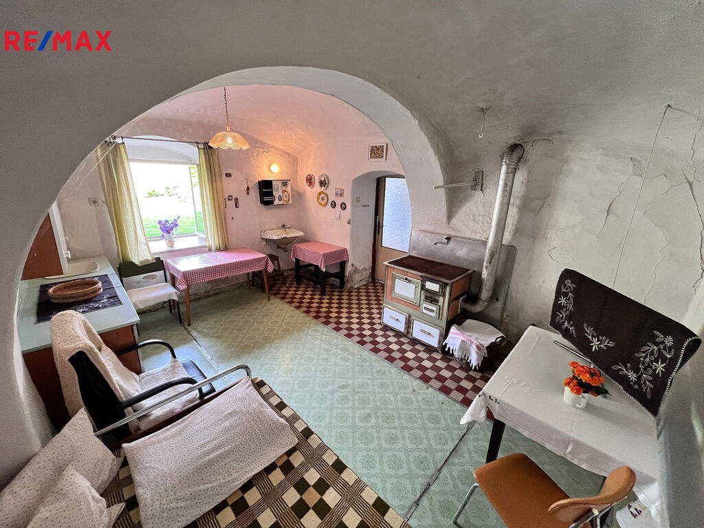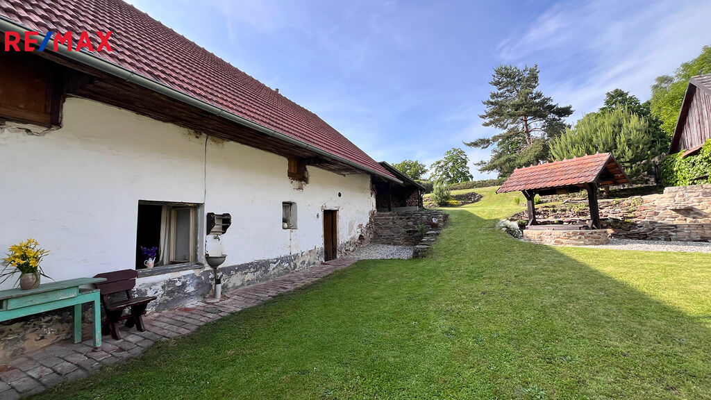 Jedná se o prodej původní zem. usedlosti s uzavřeným dvorem a navazujícím stavebním pozemkem o celkové výměře 2.144m2, který je v celém rozsahu v plochách BV určen k výstavbě, vše v obci Vlkosovice u Černovic, okr. Pelhřimov. Usedlost s průjezdem je z pravé strany tvořena dílnou a WC, z levé strany se nachází obytná část s předsíní 9,2m2, kuchyní 21m2, ložnicí 29,83m2 a komorou 7,2m2. Navazující k obytné části směrem do zahrady je původní hospodářská část. V průjezdu je částečné podsklepení cca 15m2. Dům je napojen na obecní vodovod, ve dvoře se nachází studna, kanalizace je obecní. Podlahy objektu jsou betonové. obytná část je v původním stavu určená k rekonstrukci, průjezd dílna a zahrada jsou rekonstruovány. Střecha objektu je po rekonstrukci v roce 2011, půdní prostor je celý vhodný k vestavbě. Zahrada za domem je dle platného územního plánu určena k výstavbě, je zde tedy možné realizovat další stavbu. Pro více informací volejte makléře nabídky.