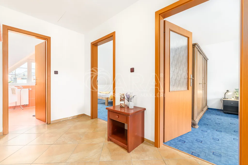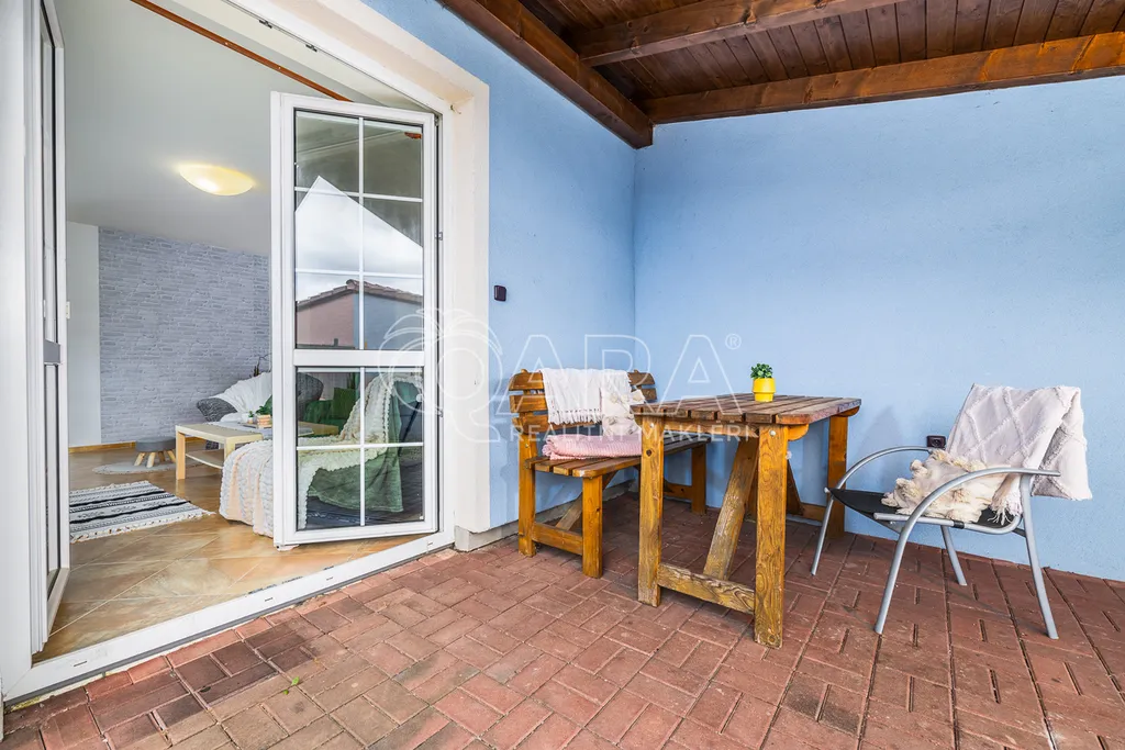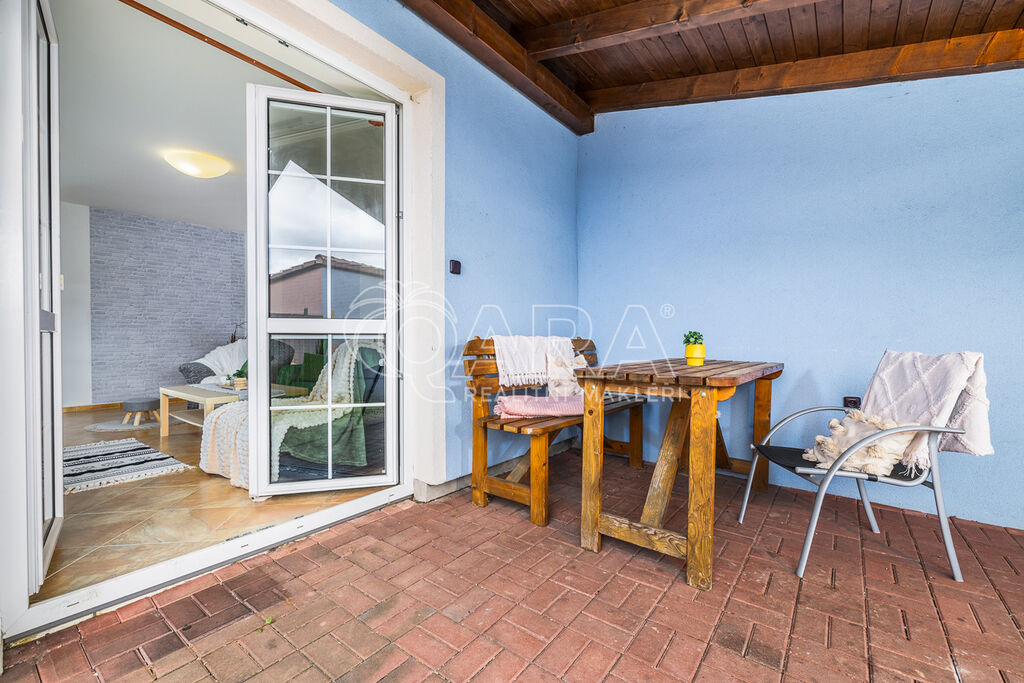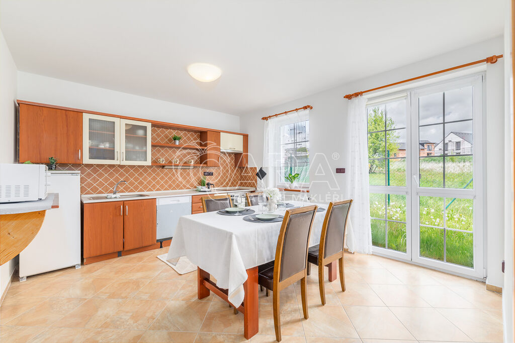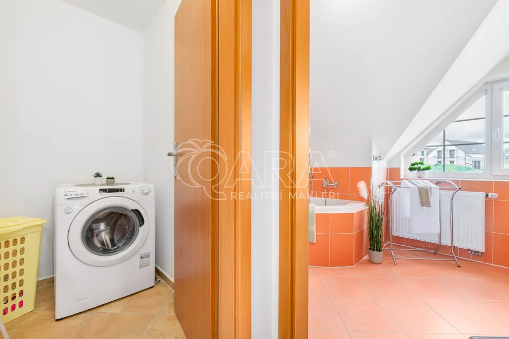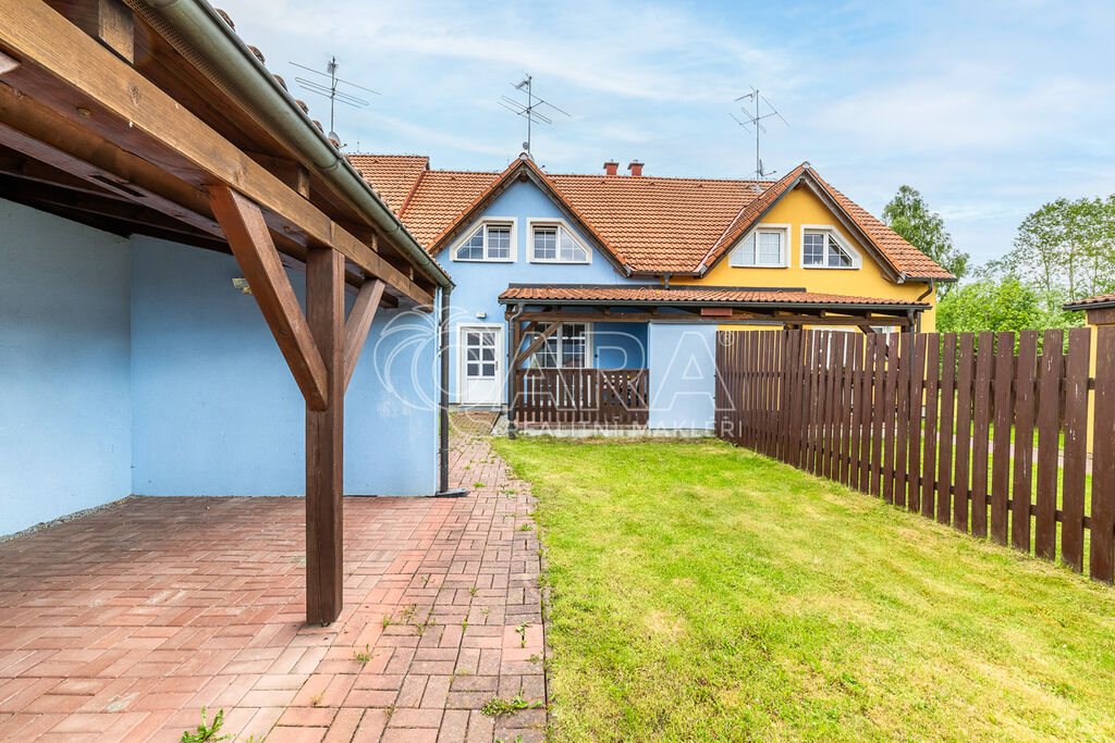 Dům jako takový poskytne užitnou plochu o necelých 120 m2 a je součástí řadového rodinného bloku, poskytne 5 obytných pokojů, dvě koupelny, prostorný obývací pokoj s kuchyní a jídelnou, technické komory a spíž. Vzdušný obývací pokoj vám skvěle doplní přímý vstup na zastřešenou terasu o výměře 14,5 m2, ideální pro posezení a grilování. Naopak na druhé straně domu budete mít z kuchyně vstup na menší zahradu za domem, kde budete mít ideální klidné prostředí na váš relax, na opalování nebo odpočinek třeba na houpačce. Jako poslední k praktičnosti domu napomůže vlastní přístřešek na auta a zahradní domek/skladovací místnost skvělá na uložení vašeho sportovního vybavení a nebo zahradní techniky. Pro další parkování je možné přikoupit ještě jedno vyhrazené parkovací stání před domem.