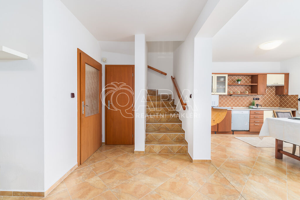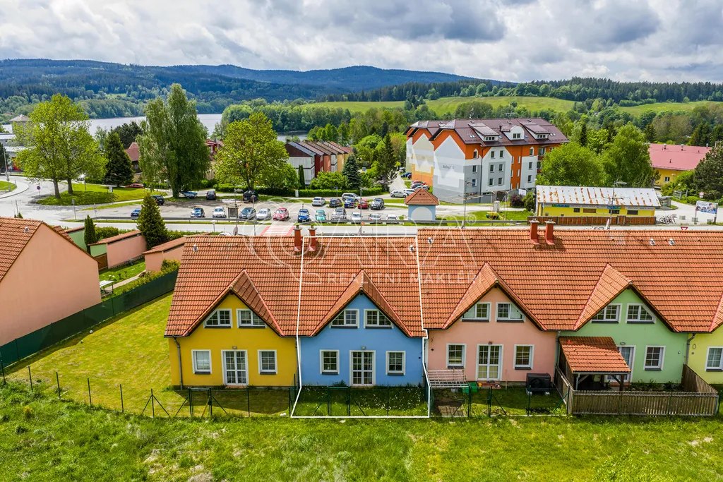 jsem velmi ráda, že vám mohu představit tento prostorný a přesto útulný řadový dům 5+kk se zastřešenou terasou, přístřeškem na auto a zahradním zděným domkem, který se nachází v malebném městysi Frymburk ležícím na pobřeží známé vodní nádrže Lipno, na praktické adrese jak pro rodinné bydlení, tak i pro rekreační pobyty či podnikatelské účely. Lokalita, ve které se nemovitost nachází, je ideální jak k trvalému bydlení, tak i k účelům rekreace a pronájmů, a tedy poskytuje dostupnost k veškeré občanské vybavenosti i sportovním aktivitám všech různých druhů. Kromě sportovního a zážitkového vyžití si zde najdete i místa pro relax, ať už ve wellnessu hotel Frymburk, nebo v krásné přírodě v okolí Lipna. V případě potřeby jste ve větším městě, jako je Český Krumlov, za 30 minut jízdy. Nacházíme se také kousek od rakouských hranic, kdy nemovitost může být ideální pro pendlery, kteří hledají skvělou kombinaci vlastního bydlení v ČR a zároveň příjemnou dojezdovou vzdálenost do vašeho zaměstnání.