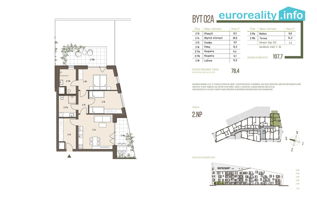 Celková užitná plocha bytu 78,4 m², balkónu 9,8 m² a terasy 14,3 m² zajišťuje pohodlné a prostorné bydlení. Se zděnou sklepní kójí o rozměru