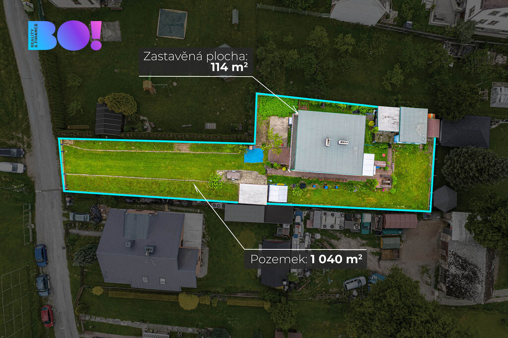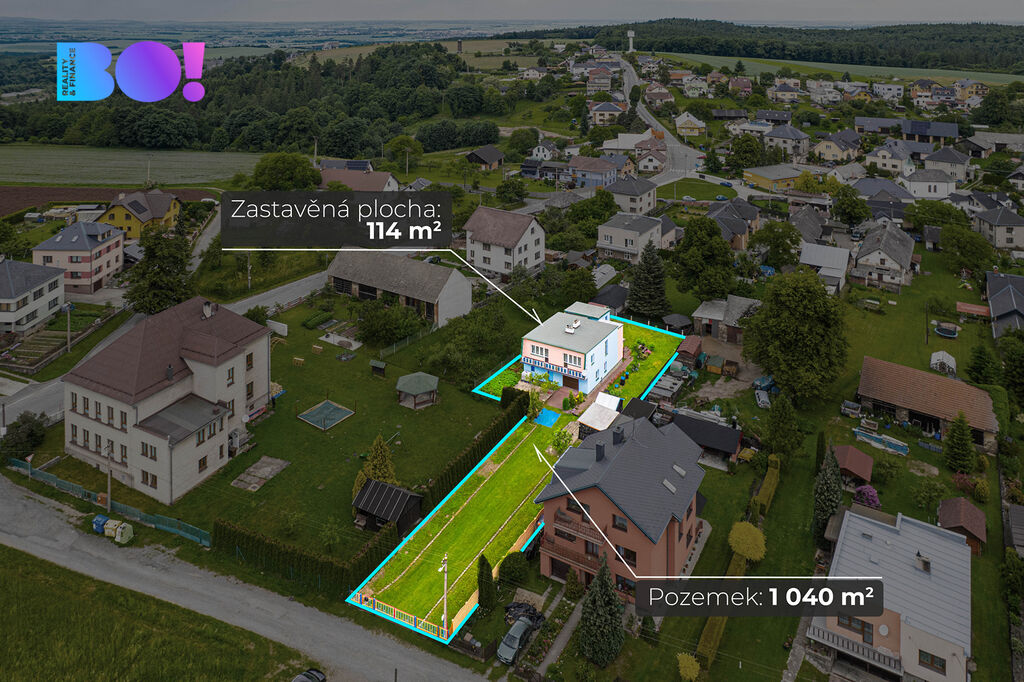 BO! reality Vám v zastoupení majitele nabízí k prodeji patrový rodinný dům v dispozici 4+1 se zastavěnou plochou 114 m² a pozemkem o rozloze 1 040 m². Nemovitost se nachází v původním, udržovaném stavu, což poskytuje ideální příležitost pro rekonstrukci dle vlastních představ.