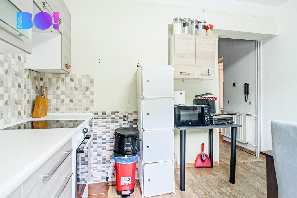 Chodba, koupelna, špajz, kuchyně, obývací pokoj s přístupem na balkon, ložnice