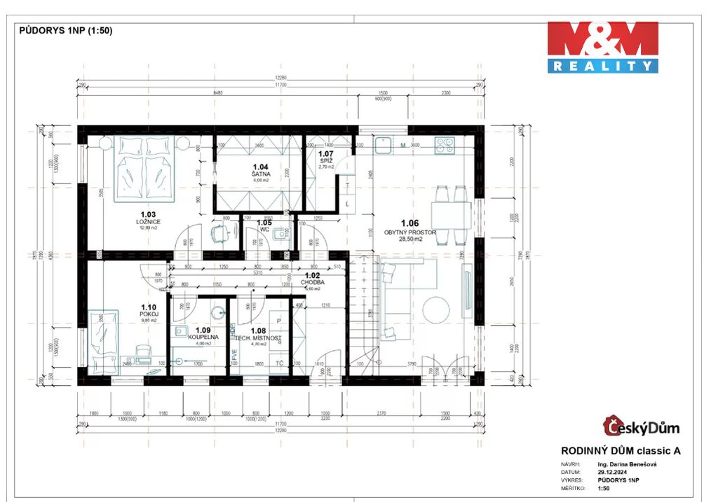 Rodinný dům na klíč – užitná plocha 95 m², dispozice 4 KK, moderní a funkční řešení přizpůsobené vašim představám.
