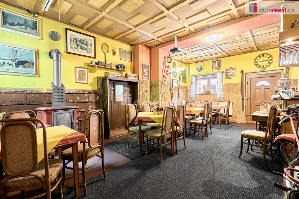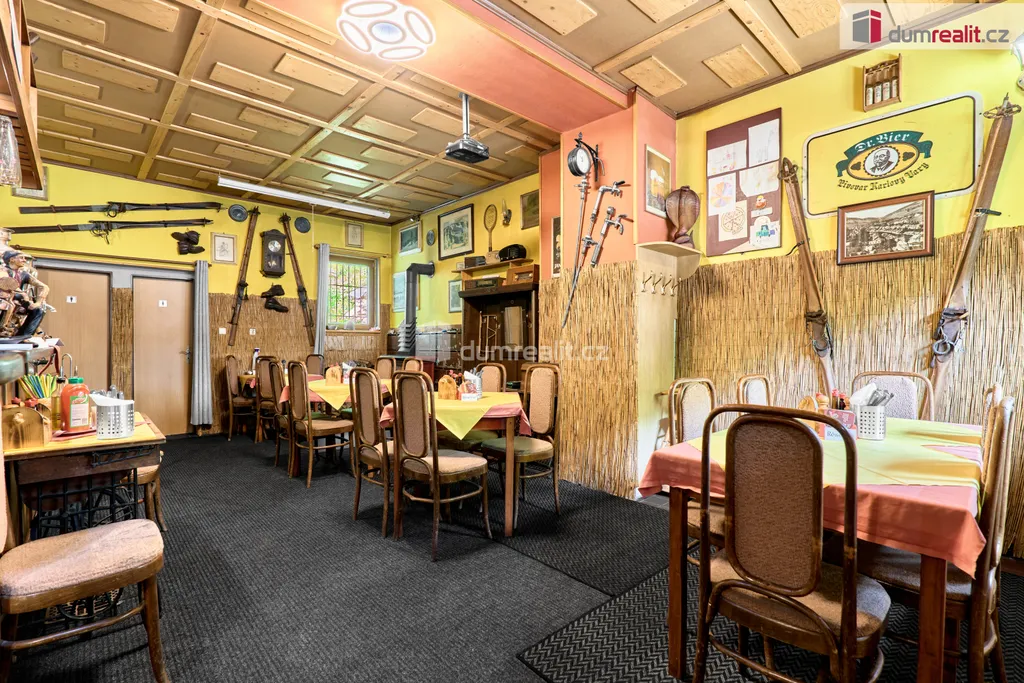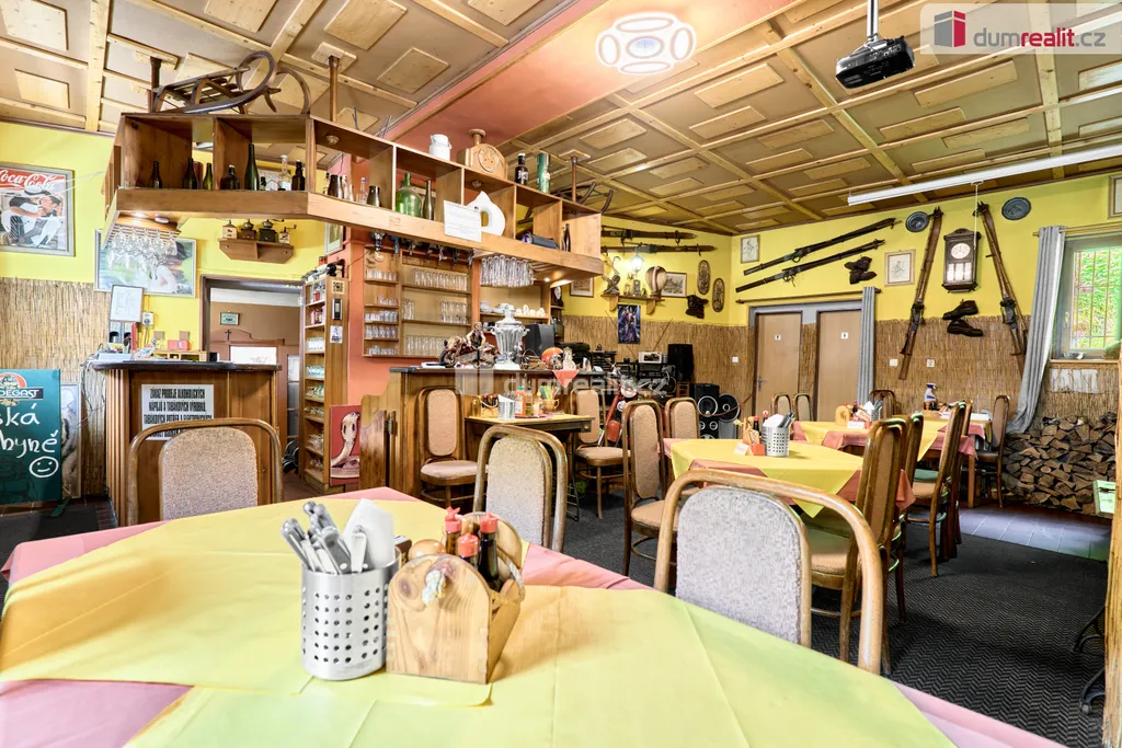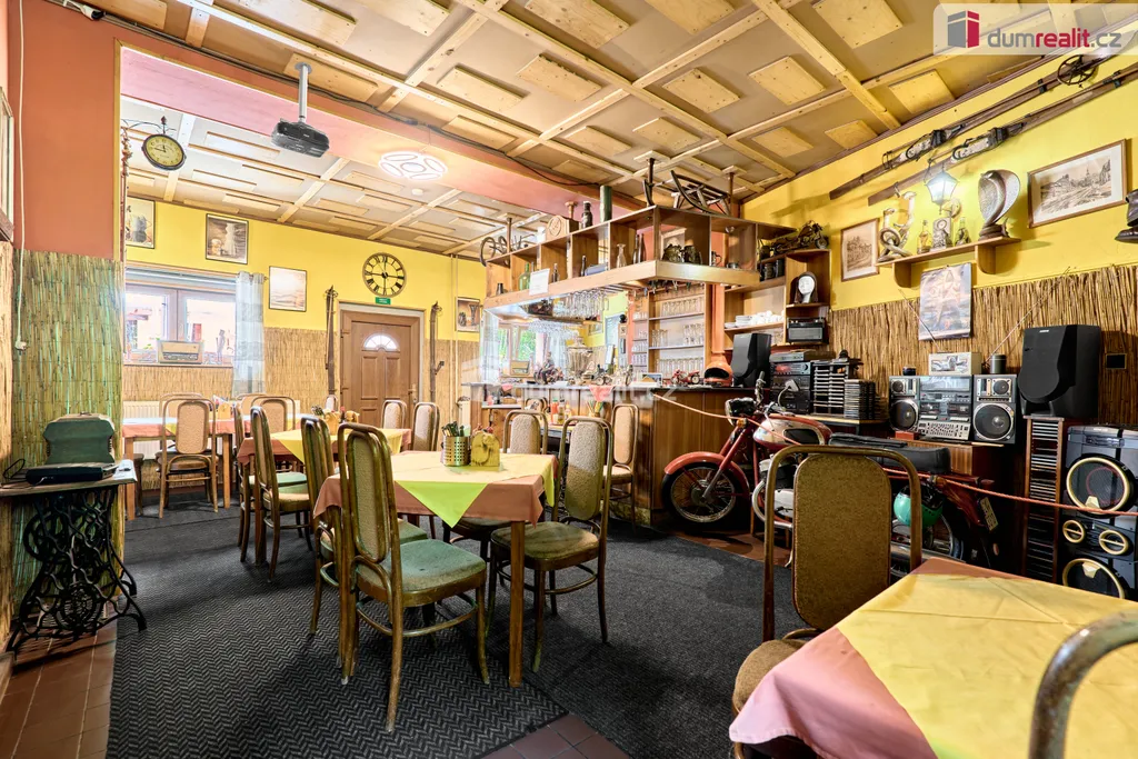 V přízemí této nemovitosti se nachází zavedená restaurace vč. stálé klientely s kapacitou 20 míst, kompletně vybavenou kuchyní a barem. Restaurace má možnost rozšíření o vnitřní venkovní terasu pro další hosty. Dále v přízemí najdete pánské a dámské toalety, skladové prostory a kotelnu s kotlem na tuhá paliva vč. zásobníku. Vytápění domů a ohřev vody je zajištěn tímto kotlem.