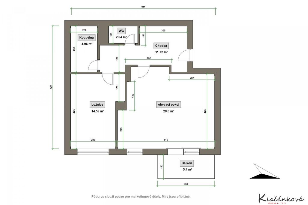 Prodej bytu 2+kk, Zlín, Tyršova, 52 m2