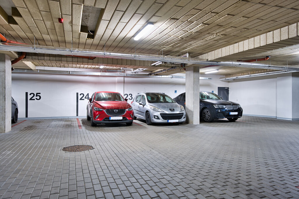 K bytu náleží vlastní garážové stání přímo v suterénu budovy, poskytující maximální komfort a ochranu vašeho vozidla.